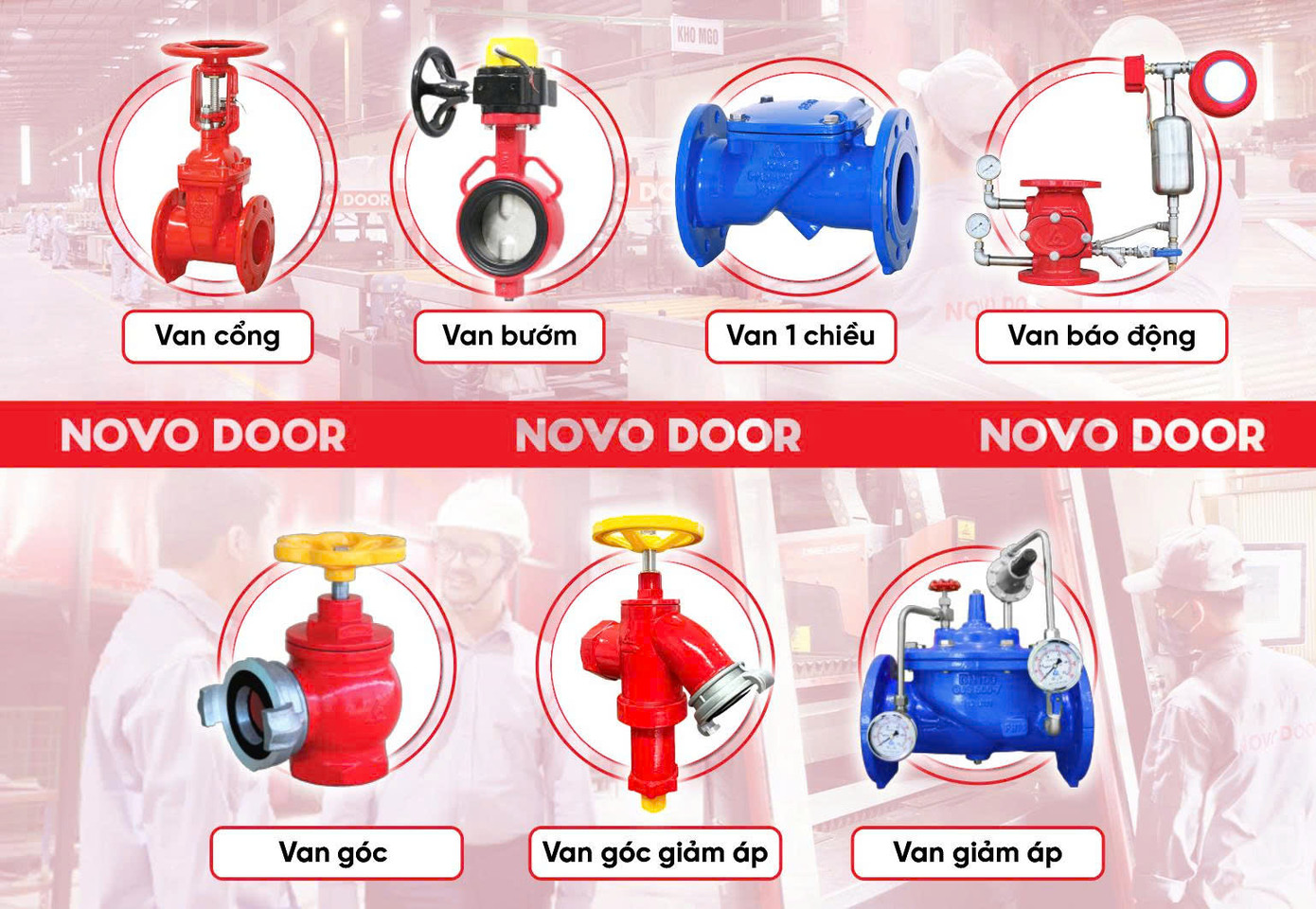 Dựa trên nhu cầu thực tế từ các nhà thầu, đơn vị thi công cơ điện và chuyên gia thiết kế hệ thống PCCC, NOVODOOR mang đến các dòng van thông dụng, hiệu suất cao, linh hoạt cho nhiều loại công trình. Danh mục 7 nhóm van kỹ thuật do NOVODOOR phân phối bao gồm van cổng, van bướm, van một chiều, van báo động, van góc,van góc giảm áp và van giảm áp.