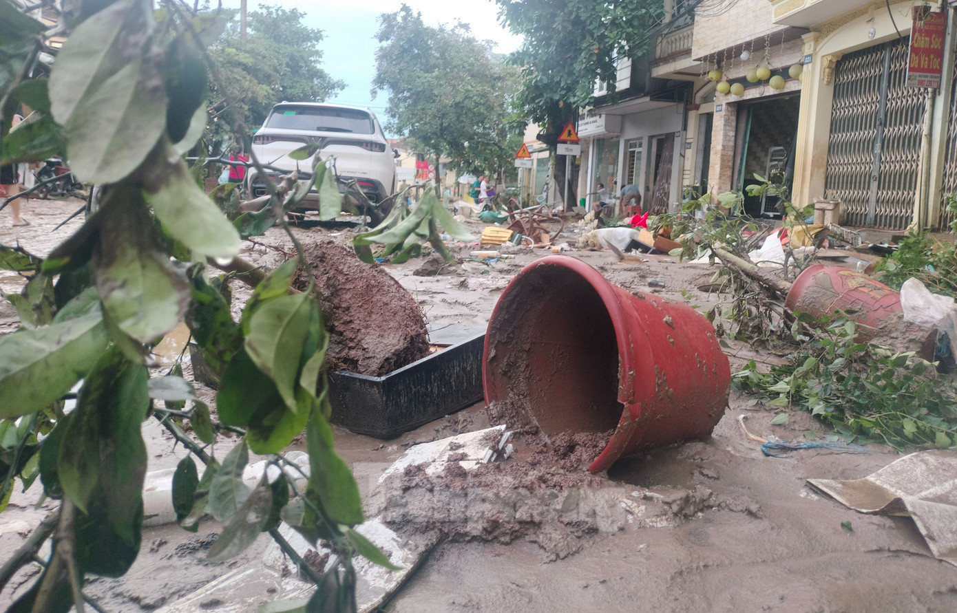 | Hiện trường để lại cảnh tan hoang, bề bộn. Ngoài dưới lớp nước mỏng là hàng nghìn tấn bùn đất cùng các đồ dùng bị hư hại của người dân. |