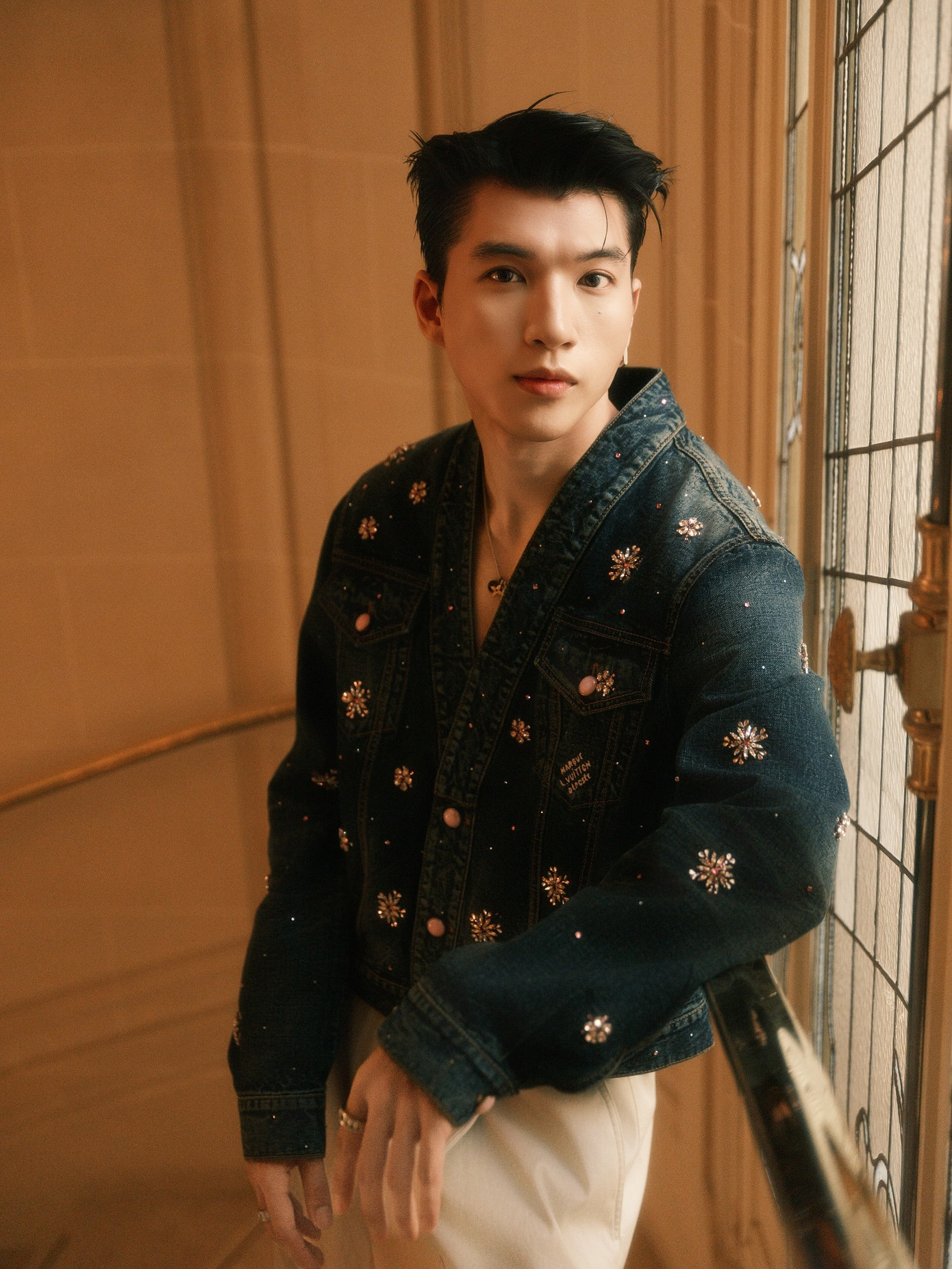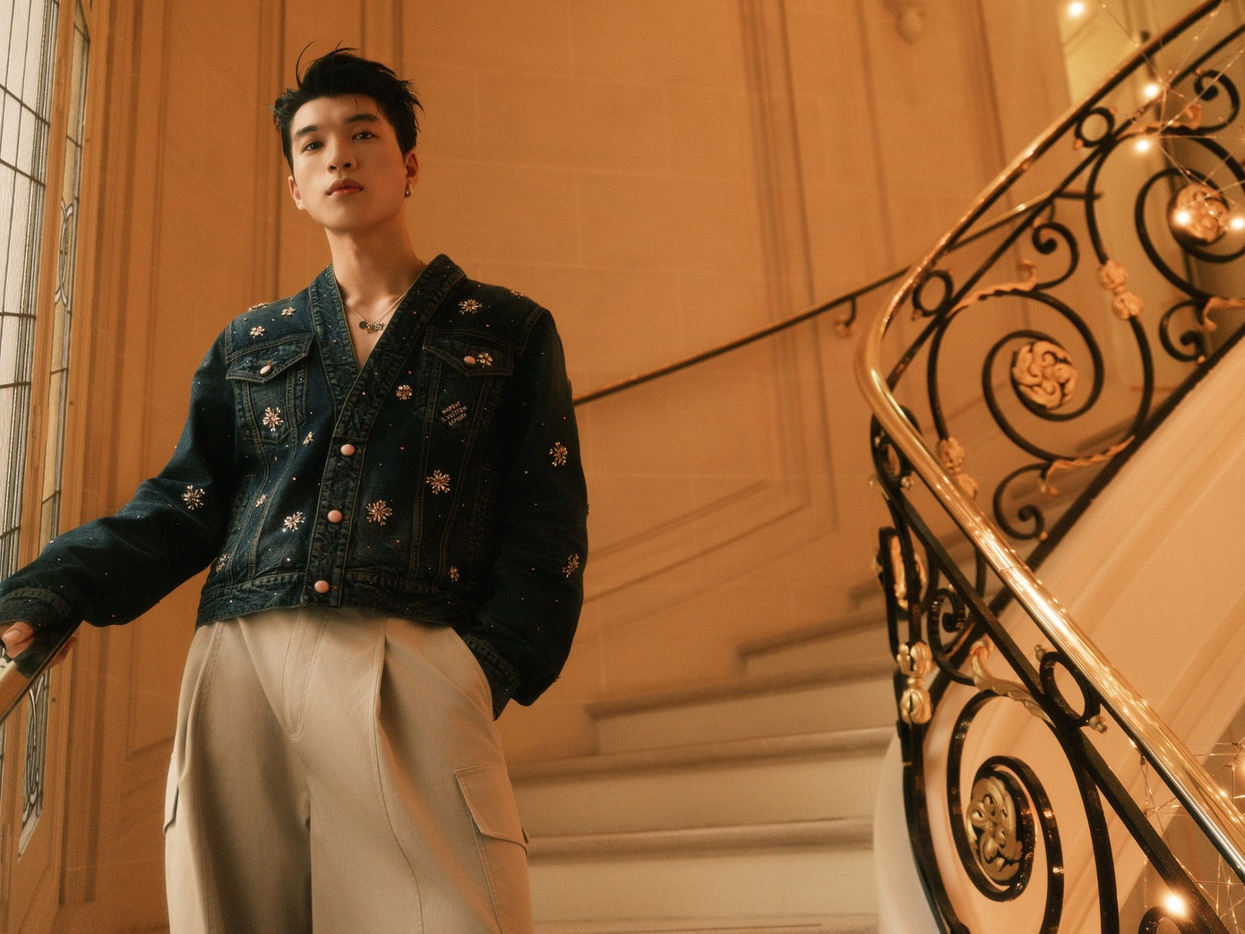 Vẻ ngoài lịch lãm và tinh tế của HIEUTHUHAI tại show diễn chính lập tức chiếm sóng mạng xã hội, nhận “cơn mưa lời khen” từ netizen. Nam rapper gây ấn tượng khi diện mẫu áo denim đính hoa đá lấp lánh, kết hợp cùng quần ống rộng màu be, tạo nên tổng thể hiện đại, cá tính. Trang sức bạc được phối đầy tinh tế giúp bộ cánh thêm phần nổi bật.
