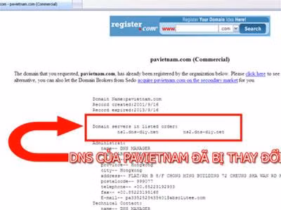Nhờ chiếm được mật khẩu tài khoản quản trị nên hacker mới có thể thay đổi được những thông tin cơ bản và máy chủ DNS quản lý tên miền. Cụ thể, máy chủ DNS quản lý tên miền gốc của PA Vietnam Ltd được chuyển thành một máy chủ khác có địa chỉ IP là 74.200.2020.215.