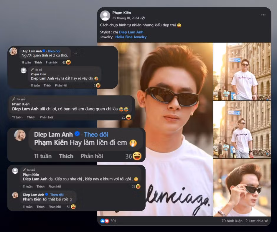 Cả Phạm Kiên và Diệp Lâm Anh đều tích cực tương tác, trả lời bình luận trong các bài viết của đối phương. Động thái của cặp sao, đặc biệt là của nam người mẫu Phạm Kiên được cho là ngầm xác nhận tin đồn hẹn hò thời gian gần đây. Khán giả để lại nhiều bình luận chúc mừng Diệp Lâm Anh với hạnh phúc mới.