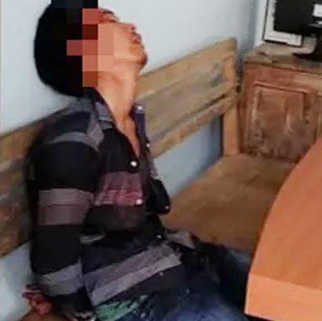 Nguyễn Đức Duy bị khống chế tại trụ sở công an xã.