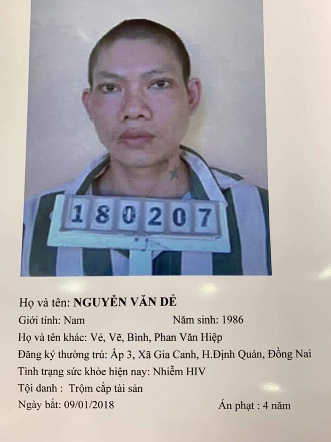 Phạm nhân Nguyễn Văn Dẻ bị các cán bộ của Trại giam Thủ Đức phối hợp với Công an địa phương bắt giữ tại khu vực ấp 3 xã Gia Canh, huyện Định Quán, tỉnh Đồng Nai – nơi đăng ký địa chỉ thường trú của phạm nhân này.