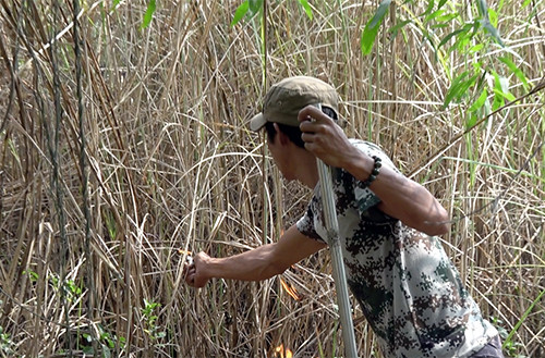 Gần trăm người gồm Công an huyện Bình Chánh, dân quân tự vệ, dân phòng và người dân bao vây bãi sậy, chặn các ngả đường quanh khu vực để truy bắt. Họ cầm gậy, vạch từng bụi rậm tìm tên cướp nhưng không thấy.