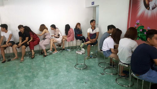 Bên trong khách sạn nằm trên đường Tô Hiến Thành (phường 13), 5 nam nữ nằm lăn lóc. Phát hiện bị kiểm tra, họ nháo nhào chạy ra ngoài nhưng đều bị giữ lại.