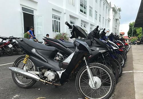 Dàn xe "bão đêm" của nhóm quái xế bị tạm giữ.