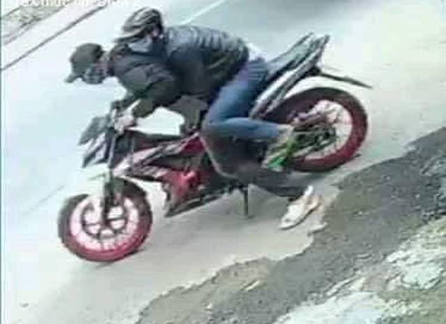 Chủ tiệm vàng truy hô thì 2 thanh niên hốt hoảng lên xe máy rời đi và để lại 1 giỏ xách, búa sắt, 2 bình xịt hơi cay và 1 mã tấu.