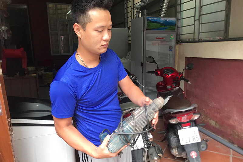 “Tôi vội cầm máy khoang chạy sang tới nơi thì không nghe tiếng bé khóc mà chỉ thấy bàn chân đỏ hỏn lộ ra. Mọi người nhanh chóng đục thủng mảng tường thì tiếp tục thấy cánh tay cháu bé đang cử động” – ông Công kể lại.