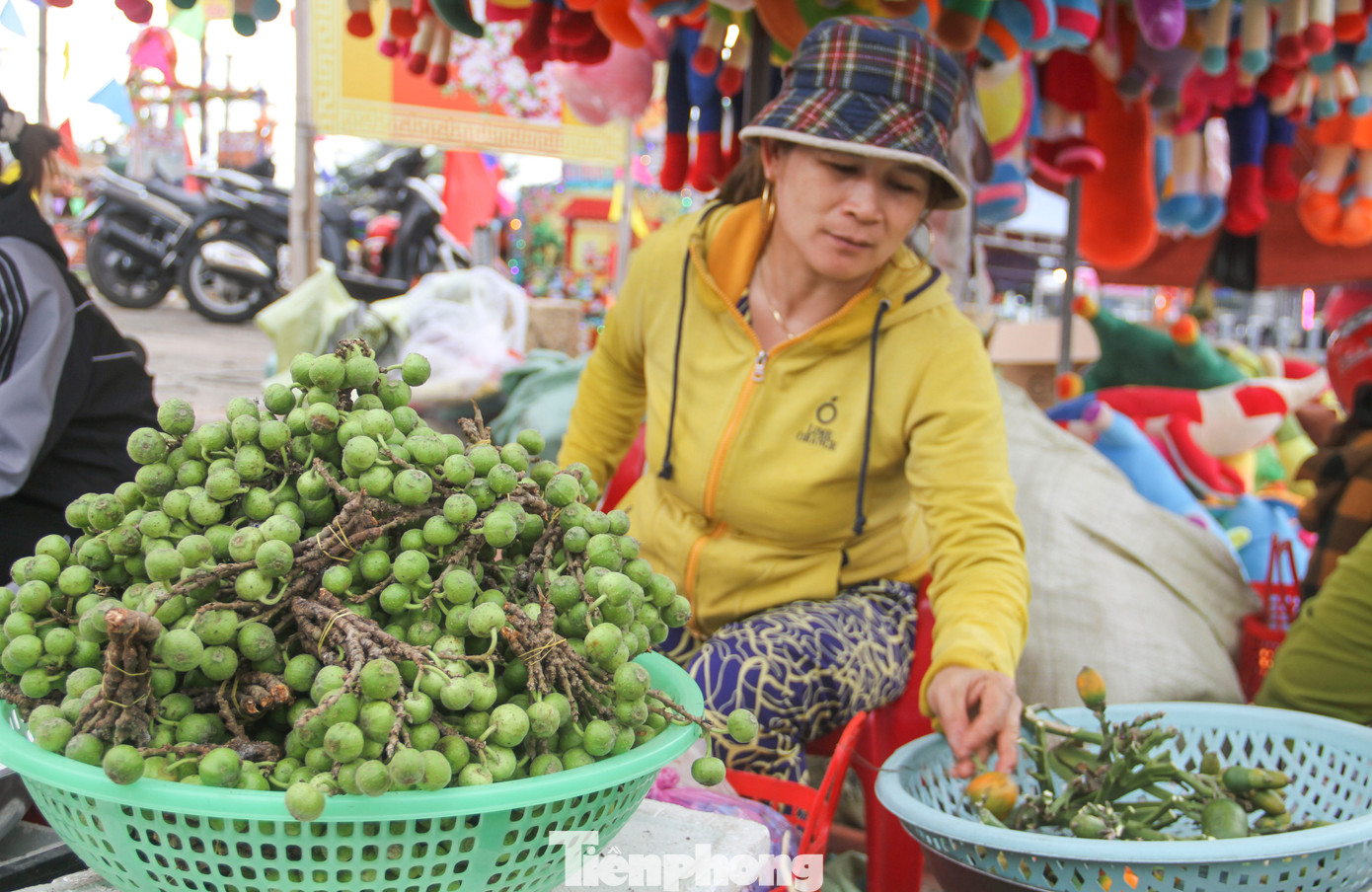 Bà Nguyễn Thị Hoa (60 tuổi, thị trấn Diêu Trì, huyện Tuy Phước) cho hay, đã đi chợ Gò 20 năm, công việc thường ngày không buôn bán ngoài chợ nhưng cứ dịp mùng 1 Tết lại mang ít sản vật của nhà trồng được để mang ra chợ bán chủ yếu cầu may mắn, lấy lộc đầu năm. (Ảnh: Trương Định).
