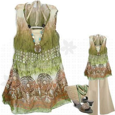 Và tất nhiên, không thể thiếu phụ kiện là những chiếc vòng cổ to và nhiều màu sắc, những chiếc túi xách hay sandal hợp tông với áo.