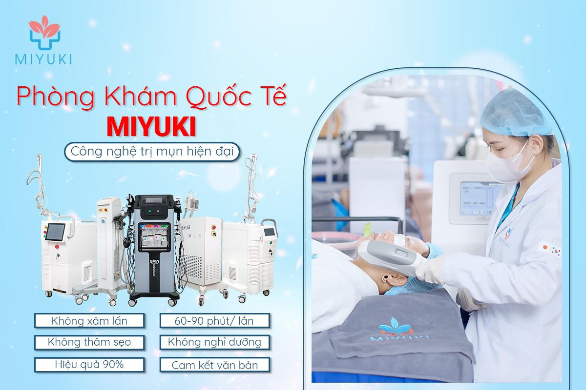 An toàn trong làm đẹp là tiêu chí quan trọng khi lựa chọn cơ sở chăm sóc da hiện nay. Phòng khám Quốc tế Miyuki là một trong số những địa chỉ trị mụn uy tín nhất TPHCM, được Bộ Y tế cấp phép chứng nhận và hàng ngàn khách hàng tin tưởng lựa chọn.
