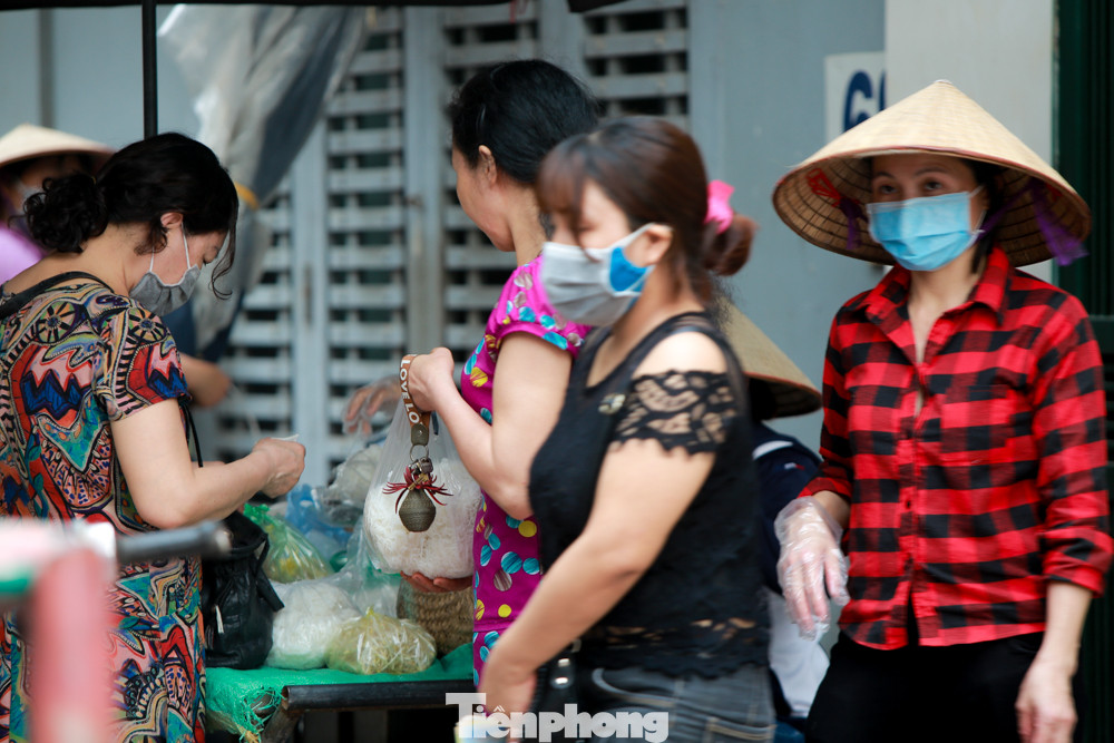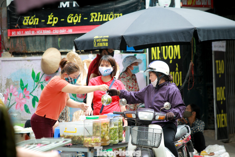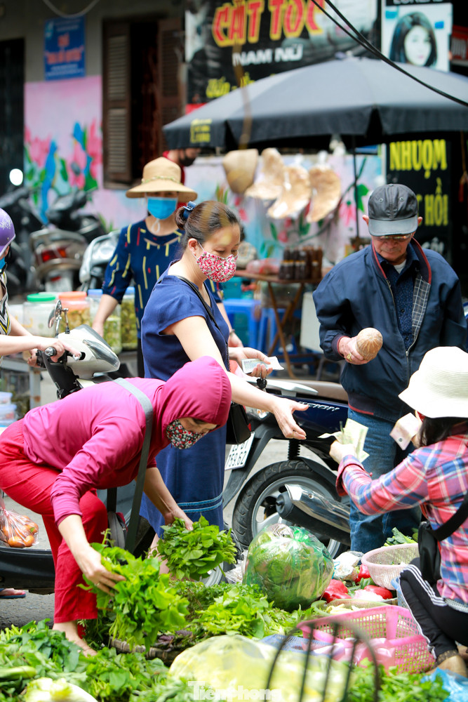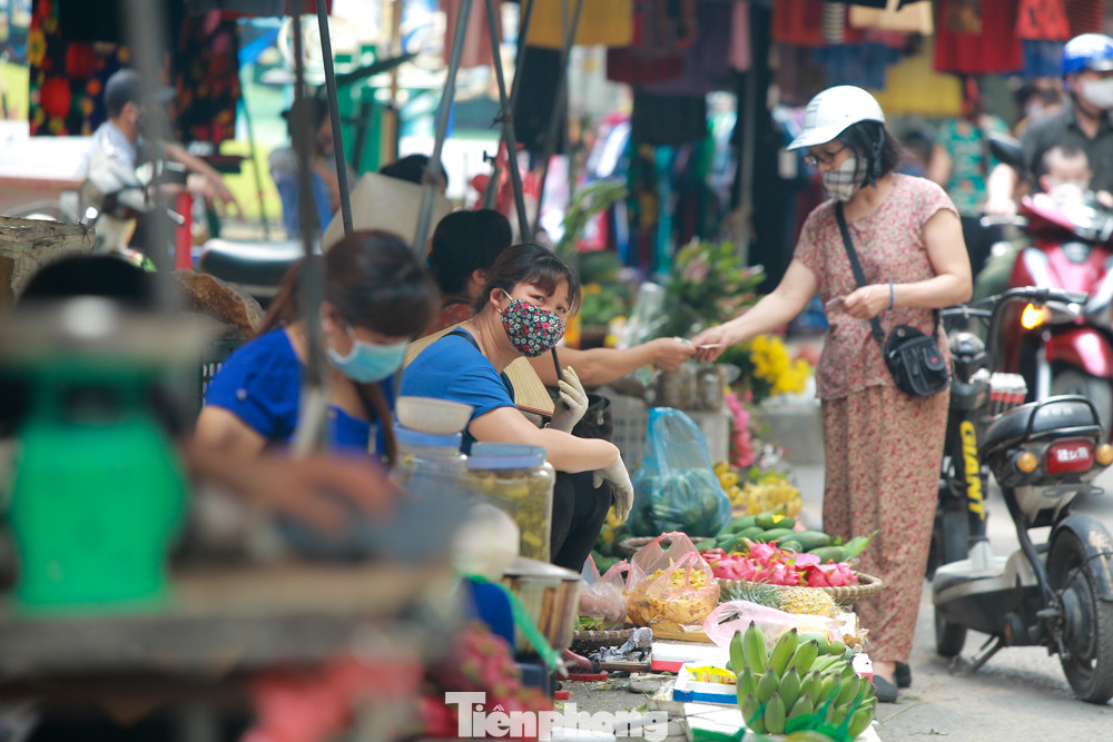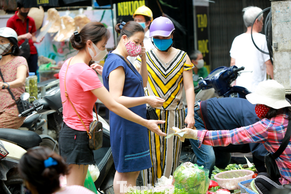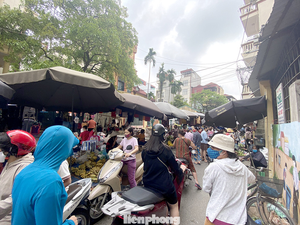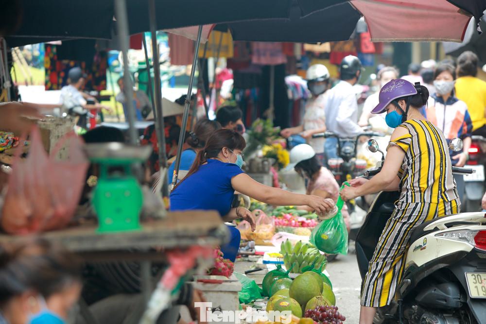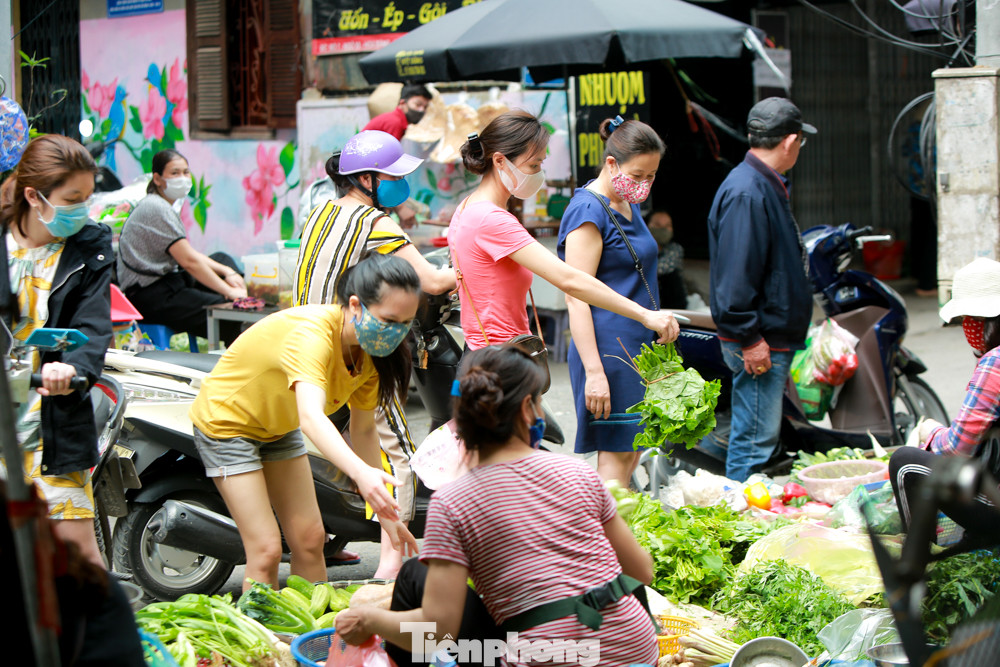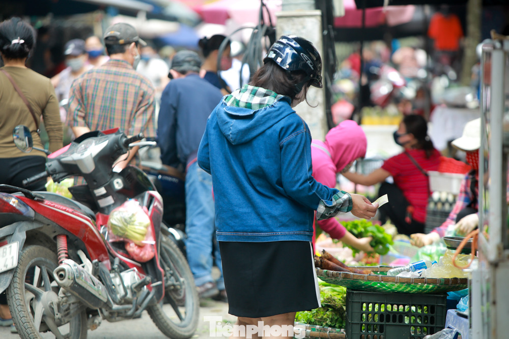 Một khu chợ dân sinh tại khu vực Cầu Giấy sáng 27/3. Người bán, kẻ mua đông đúc từ sáng sớm