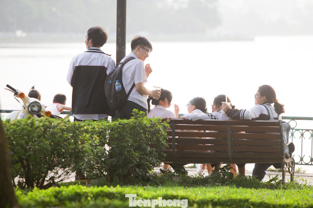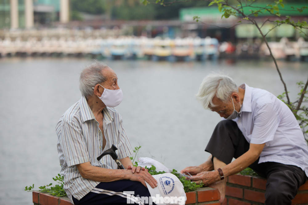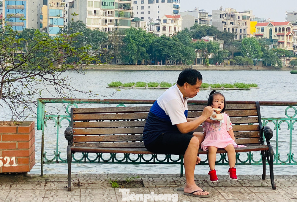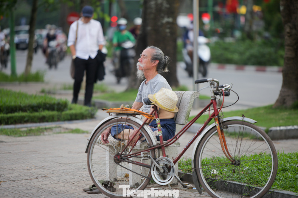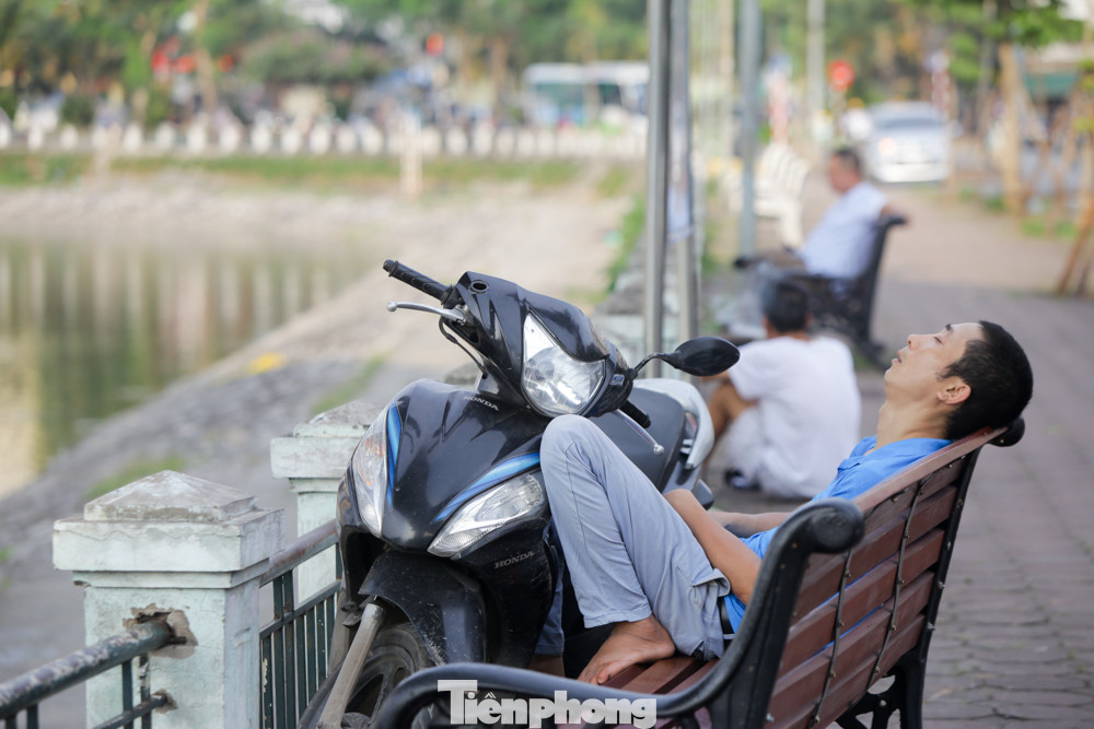 Hồ Hoàng Cầu cũng ghi nhận hình ảnh người dân tranh thủ chợp mắt dưới bóng cây ven hồ.