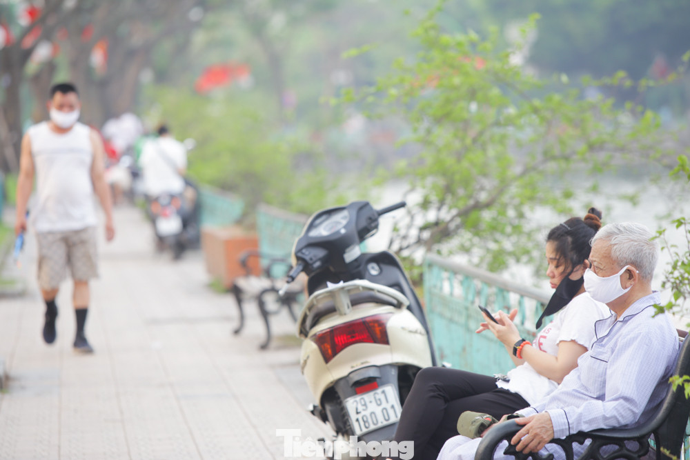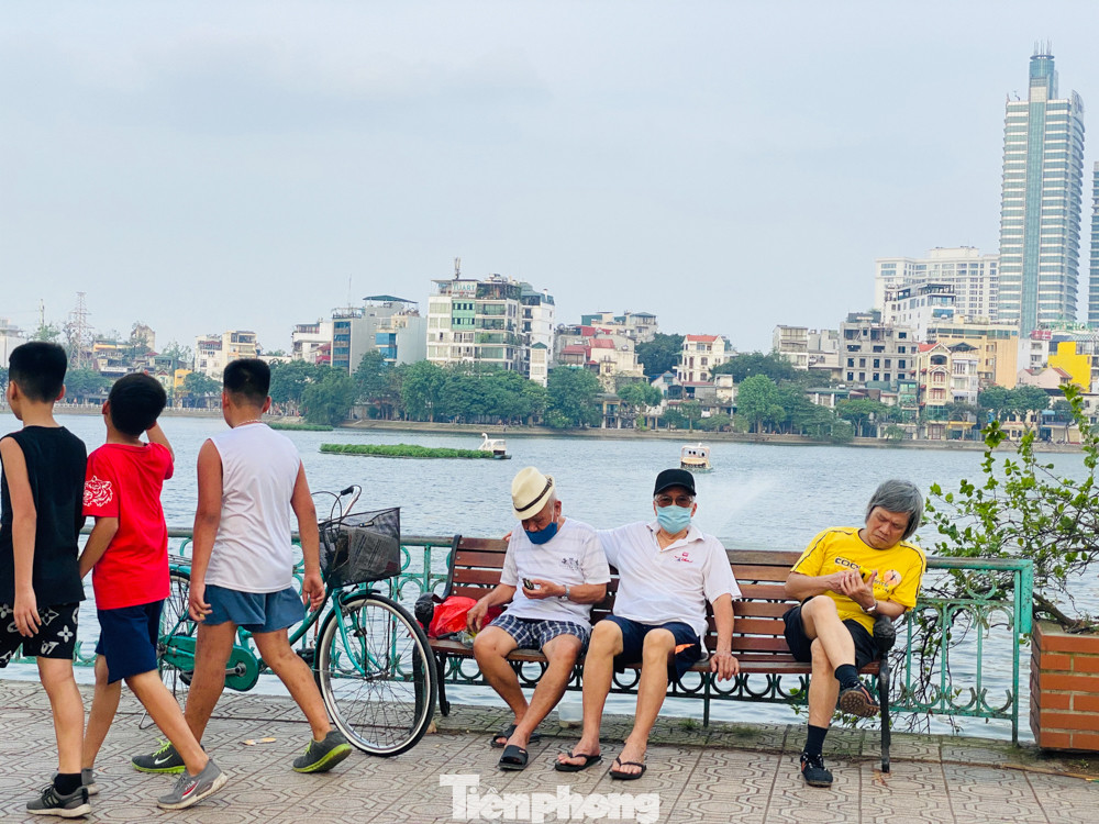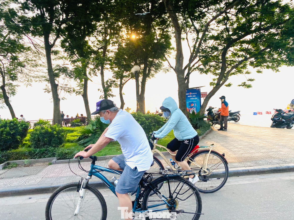 Nhiều người dân Hà Nội đổ ra khu vực Hồ Tây để tận hưởng không gian thoáng đãng.
