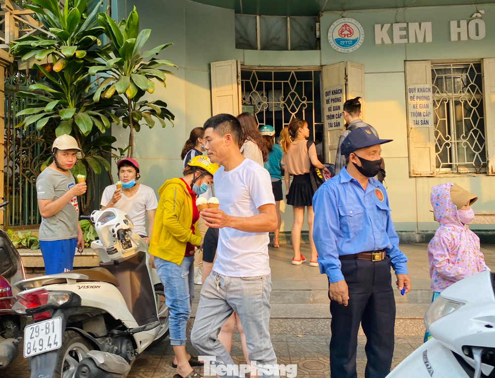 Một cửa hàng kem Hồ Tây chật kín người.