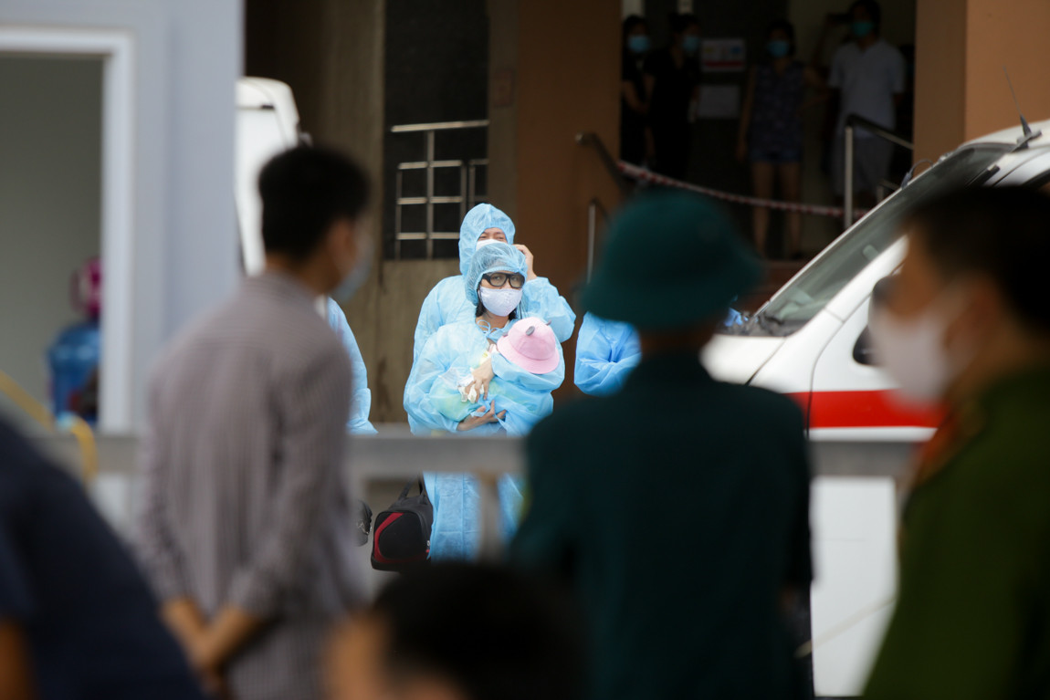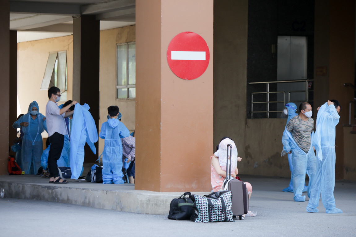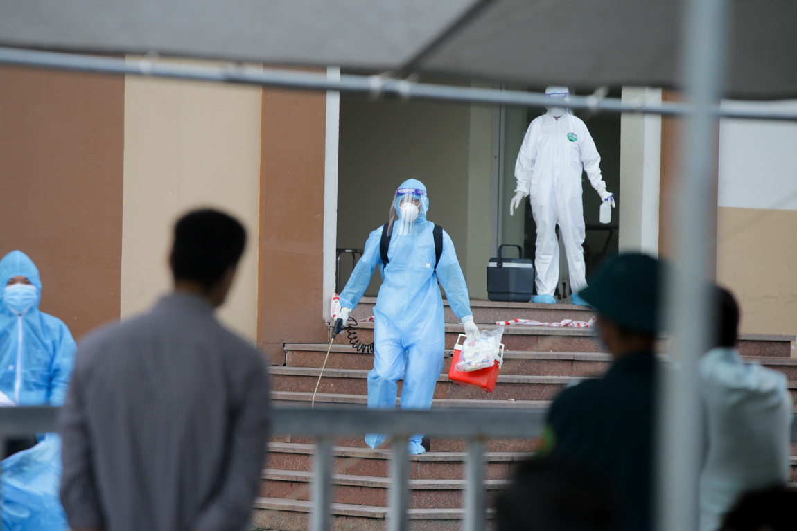 9h30 những trường hợp F1 đầu tiên đã được vận chuyển đến khu cách ly tập trung sau khi lấy mẫu xét nghiệm.