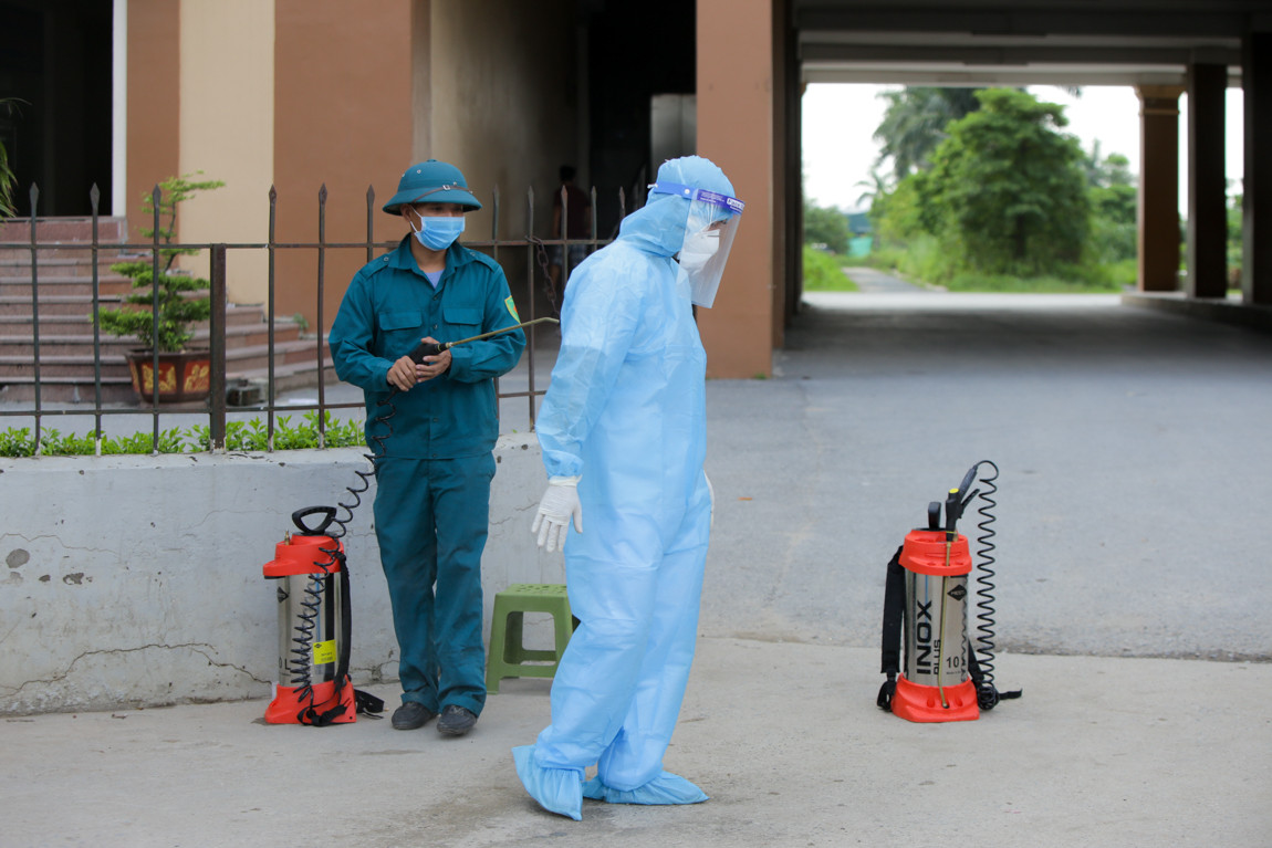 Ngày 8/8, đại diện UBND xã Đức Thượng (Hoài Đức) cho biết đã khử khuẩn toàn bộ tòa chung cư Tân Việt từ tối qua (7/8).