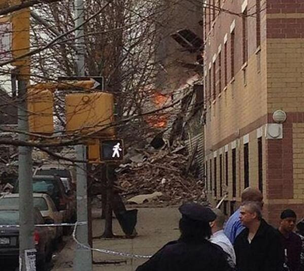 Nhân viên cứu hỏa đang vật lộn với một ngọn lửa tại khu vực tòa nhà sụp đổ ở Harlem vì lo ngại người có thể đang bị mắc kẹt bên trong