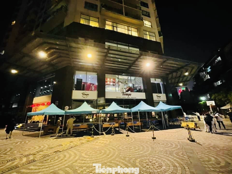 Lúc 21h30 tối qua, lực lượng chức năng dựng rào chắn bên ngoài tòa nhà 88 Láng Hạ, không cho ai ra vào.