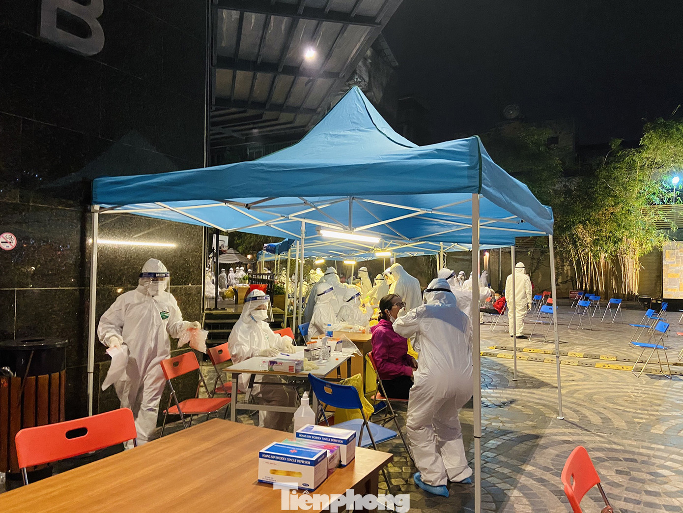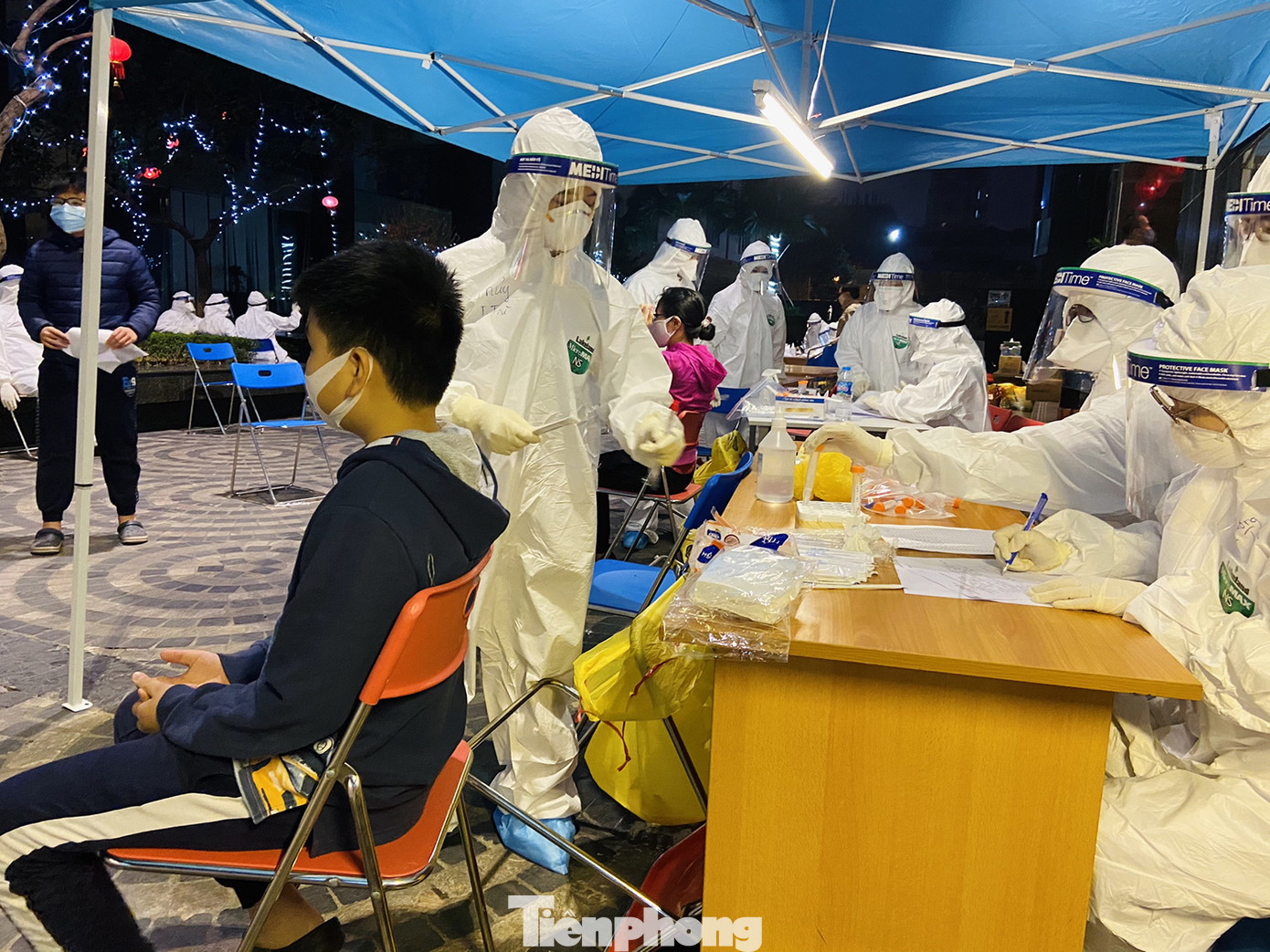 Ngay trong đêm, lực lượng y tế đã triển khai lẫy mẫu xét nghiệm nhanh cho cư dân ngay trong sân toà nhà.