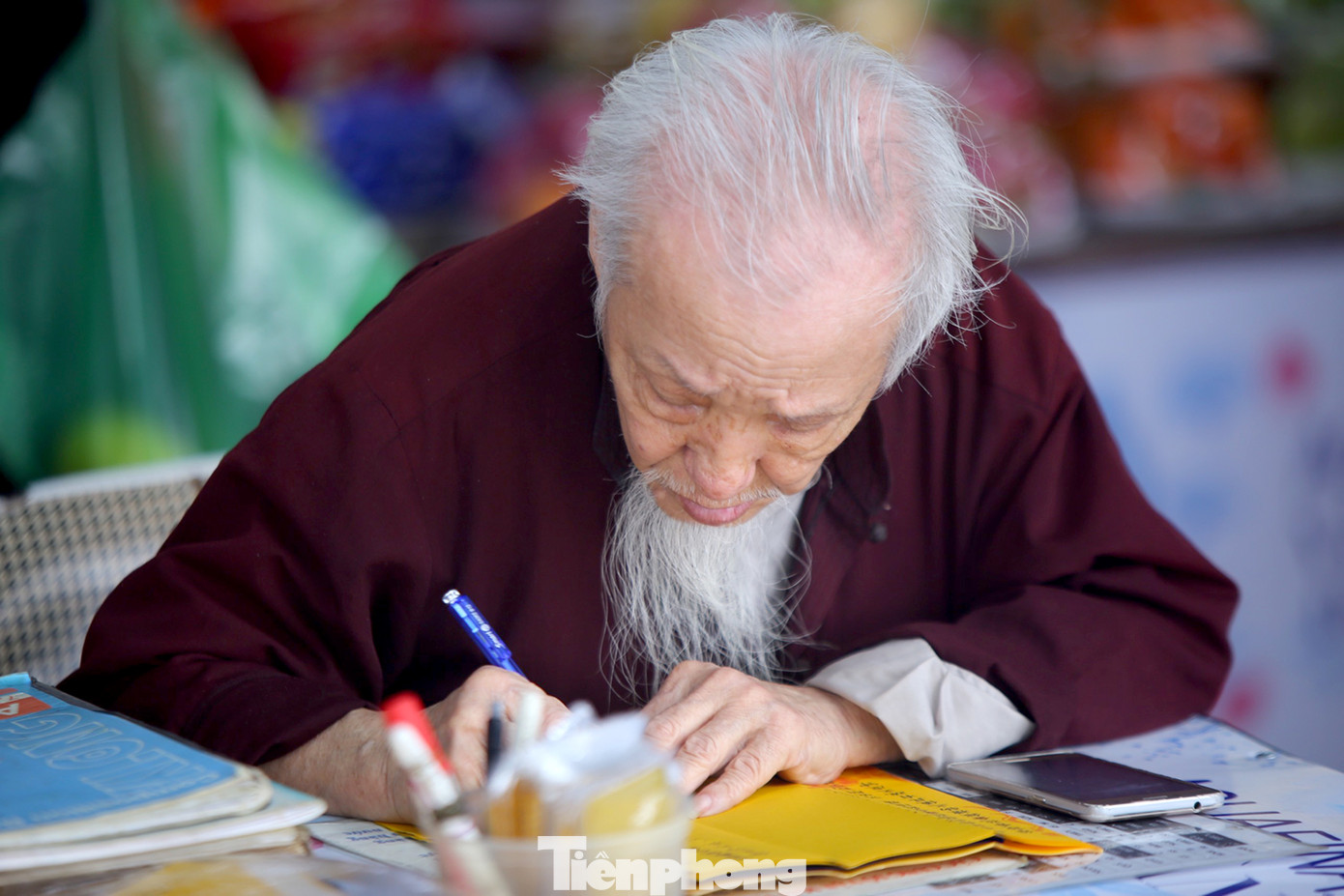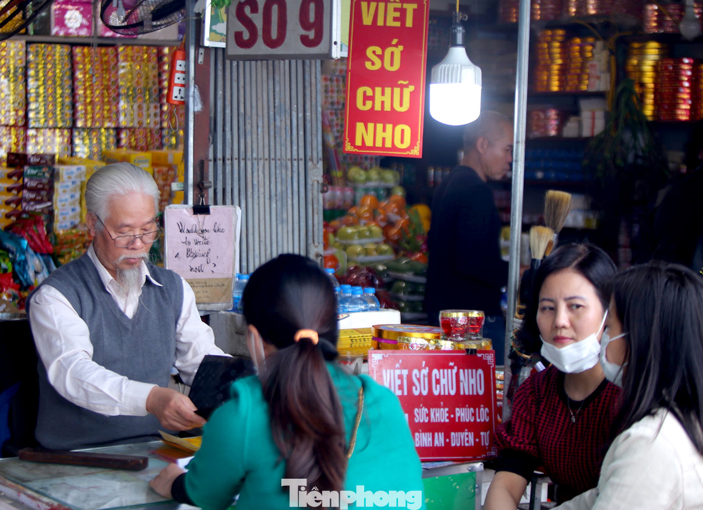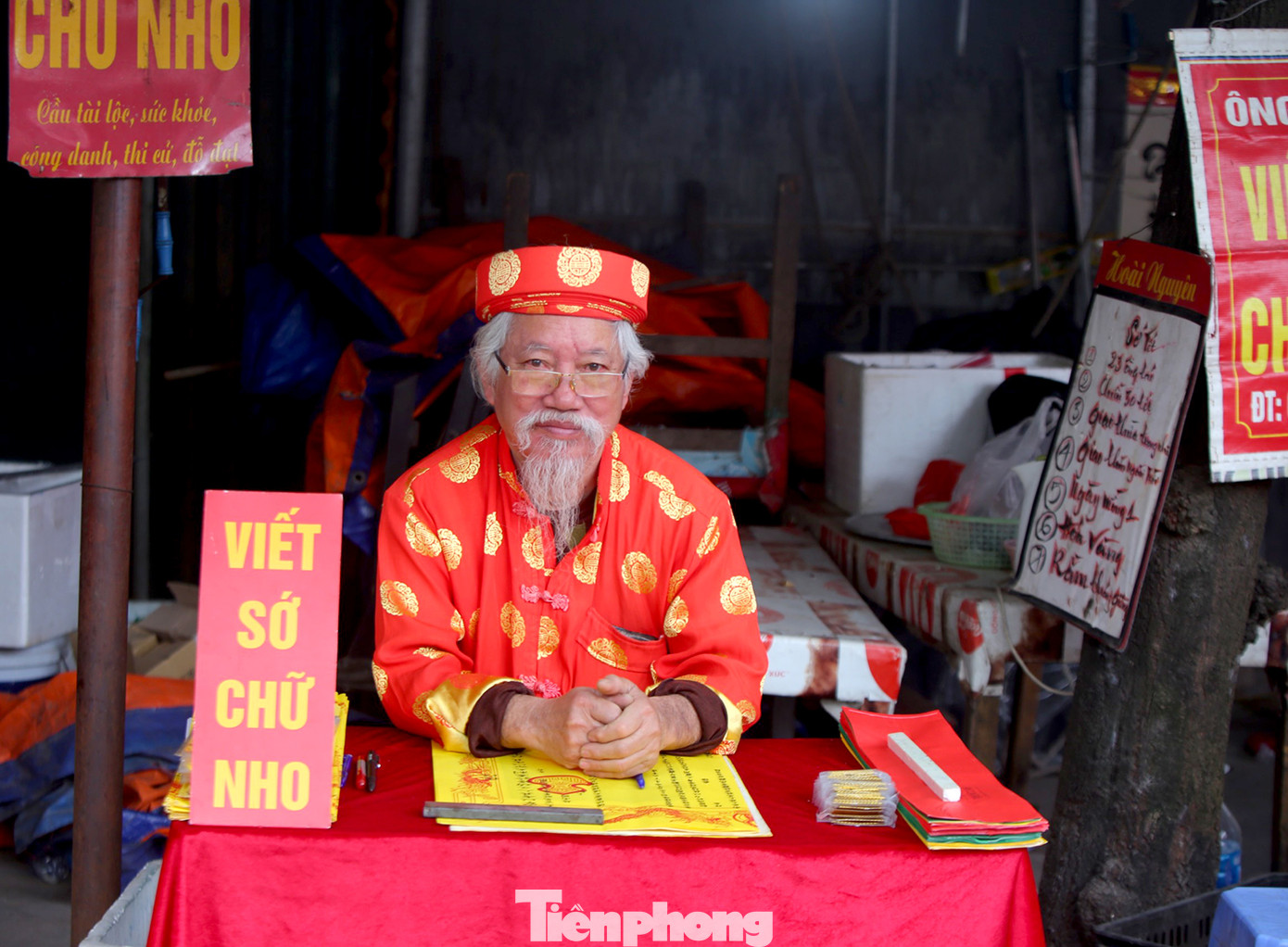 Xếp hàng chờ viết sớ ở Phủ Tây Hồ ảnh 6Các cụ già hành nghề thầy đồ viết sớ luôn có mặt tại Phủ Tây Hồ từ sáng sớm.
