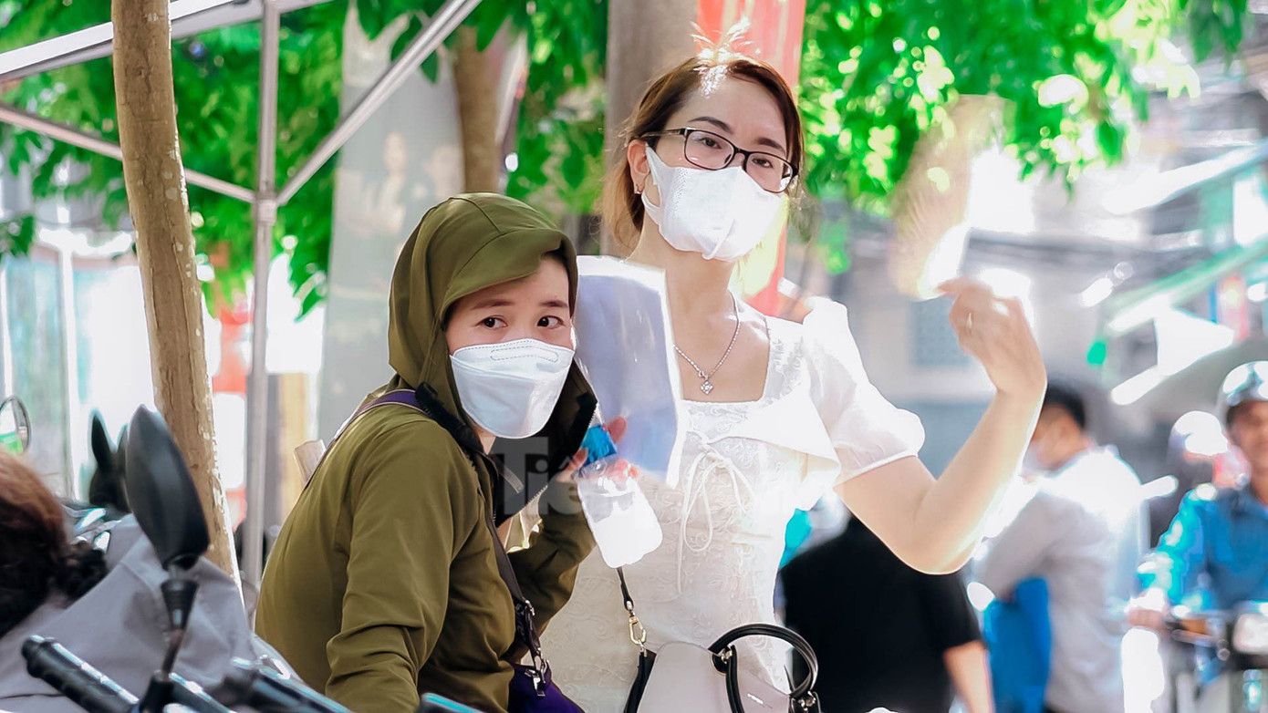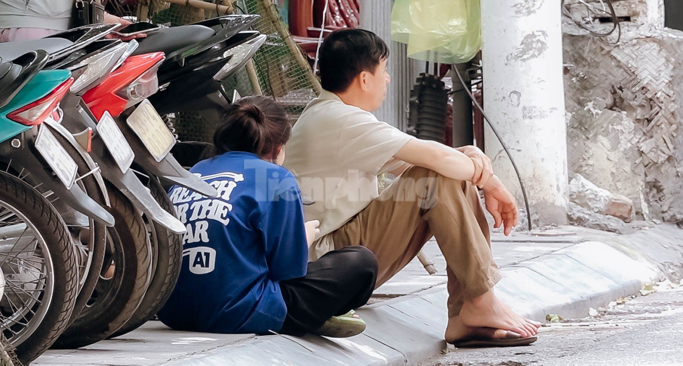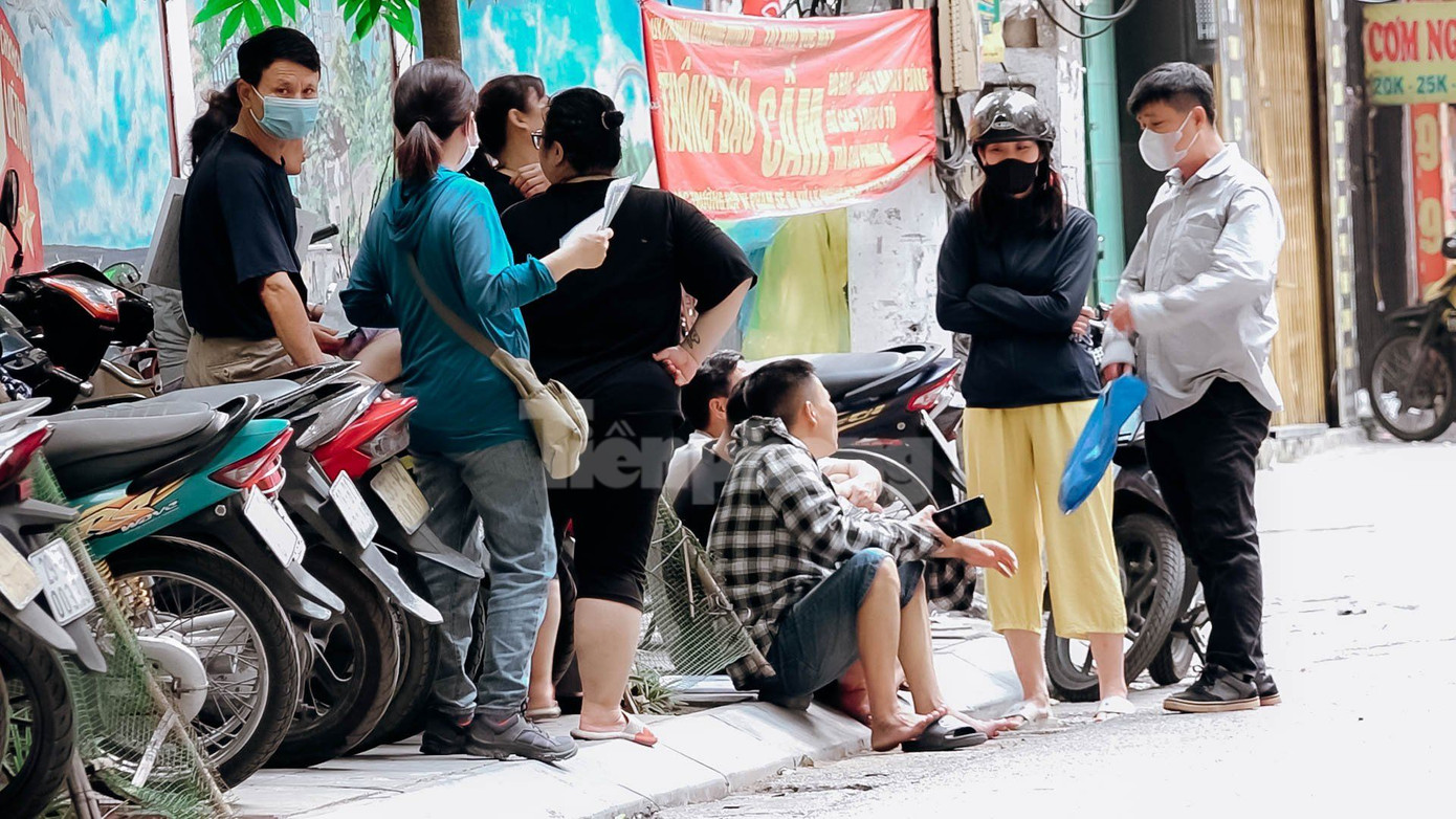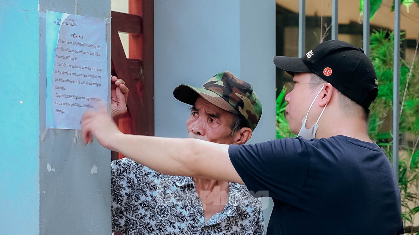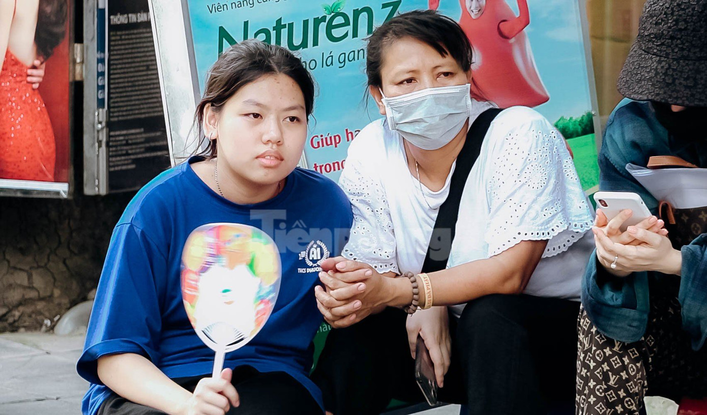 Một số hình ảnh phụ huynh ngồi chờ thông tin điểm chuẩn bổ sung tại Trường THPT Đoàn Kết - Hai Bà Trưng chiều nay: