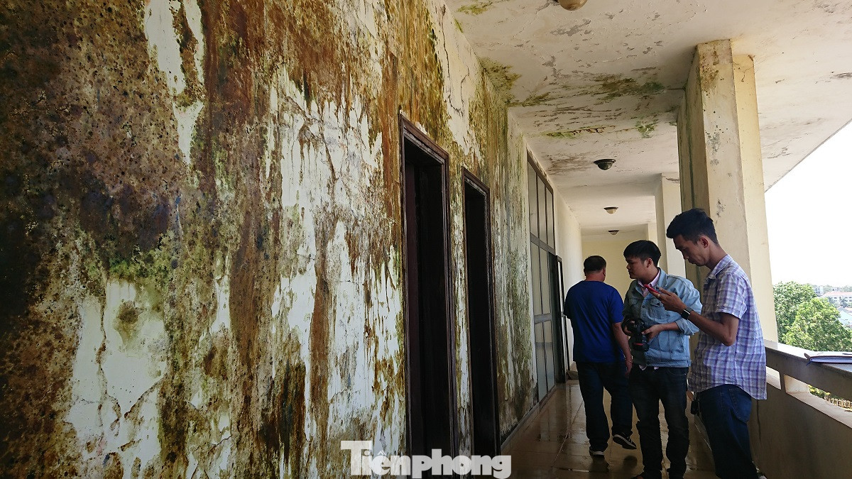 Một nhân viên dẫn phóng viên đi một vòng quanh toà nhà đồ sộ này, chứng kiến rất nhiều phòng ốc, tường, sàn nhà hư hỏng nghiêm trọng.
