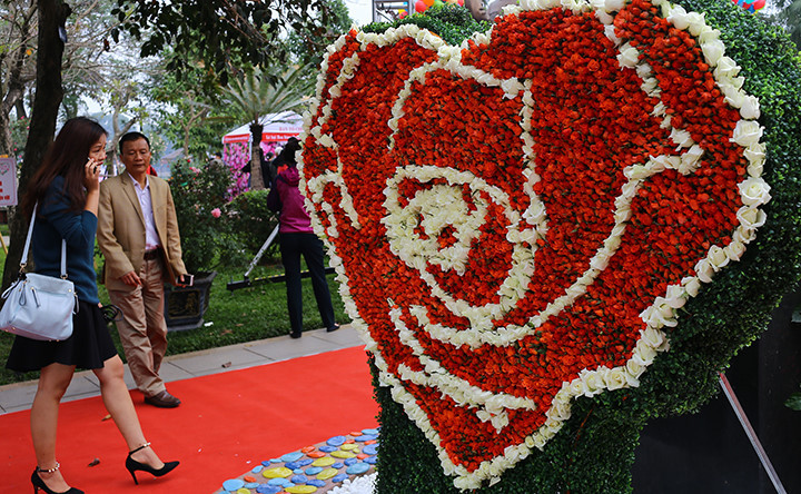 "Trái tim" toàn làm từ hoa giả. (Ảnh: Internet)