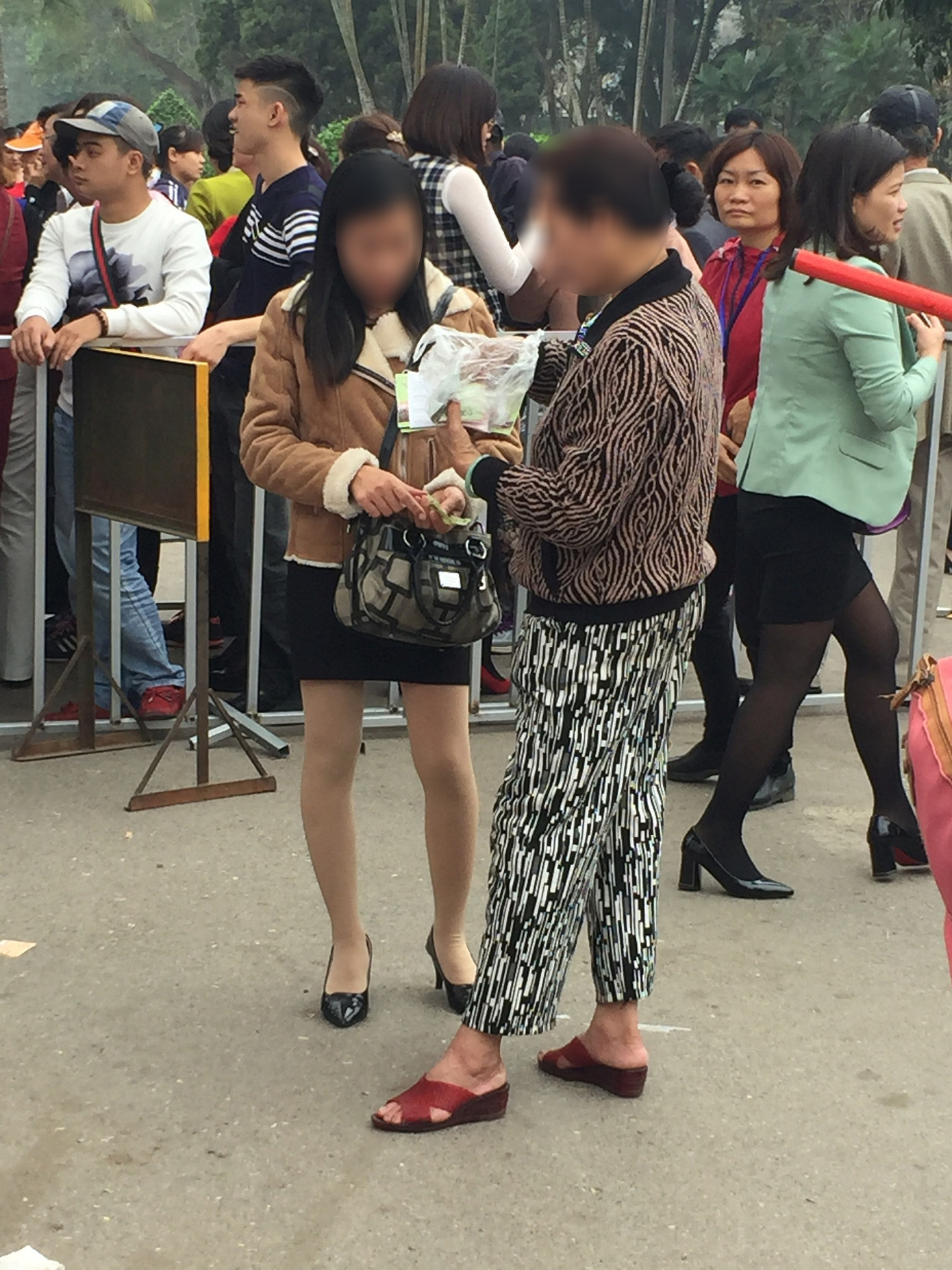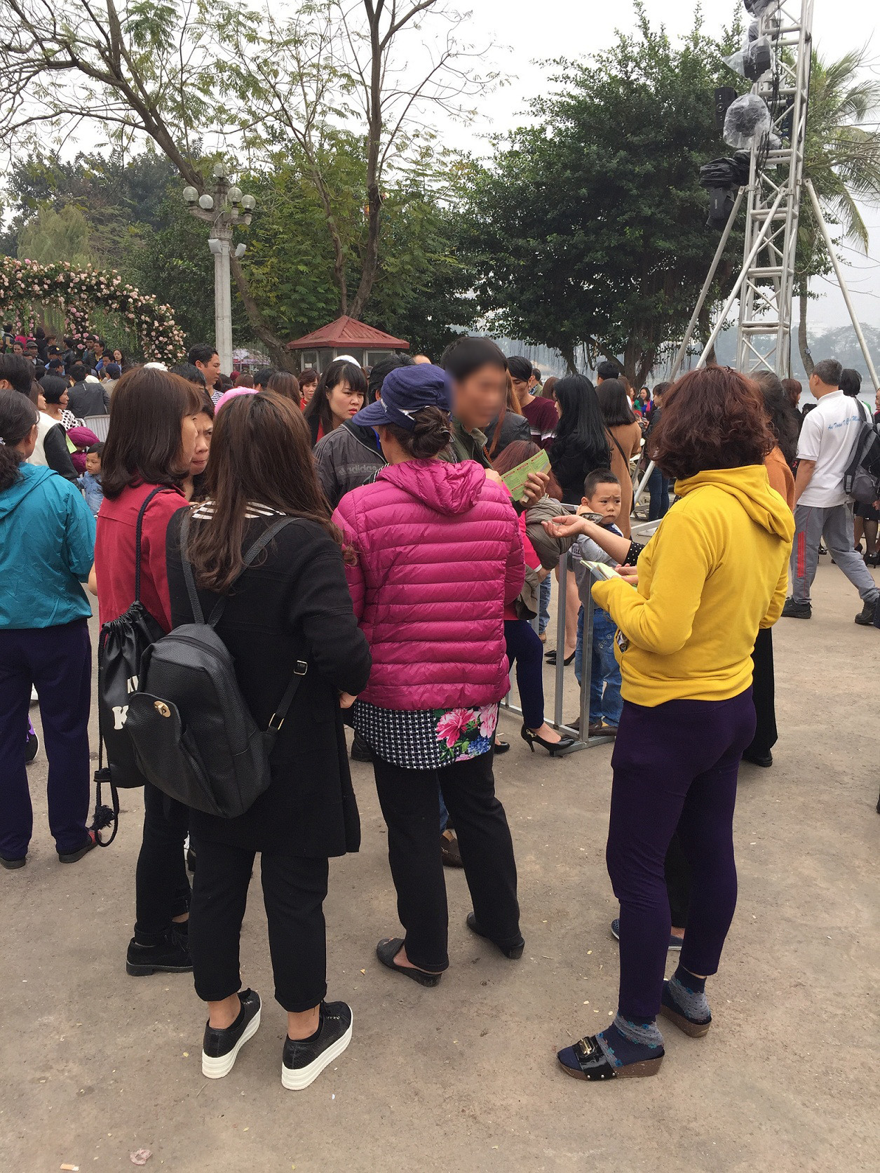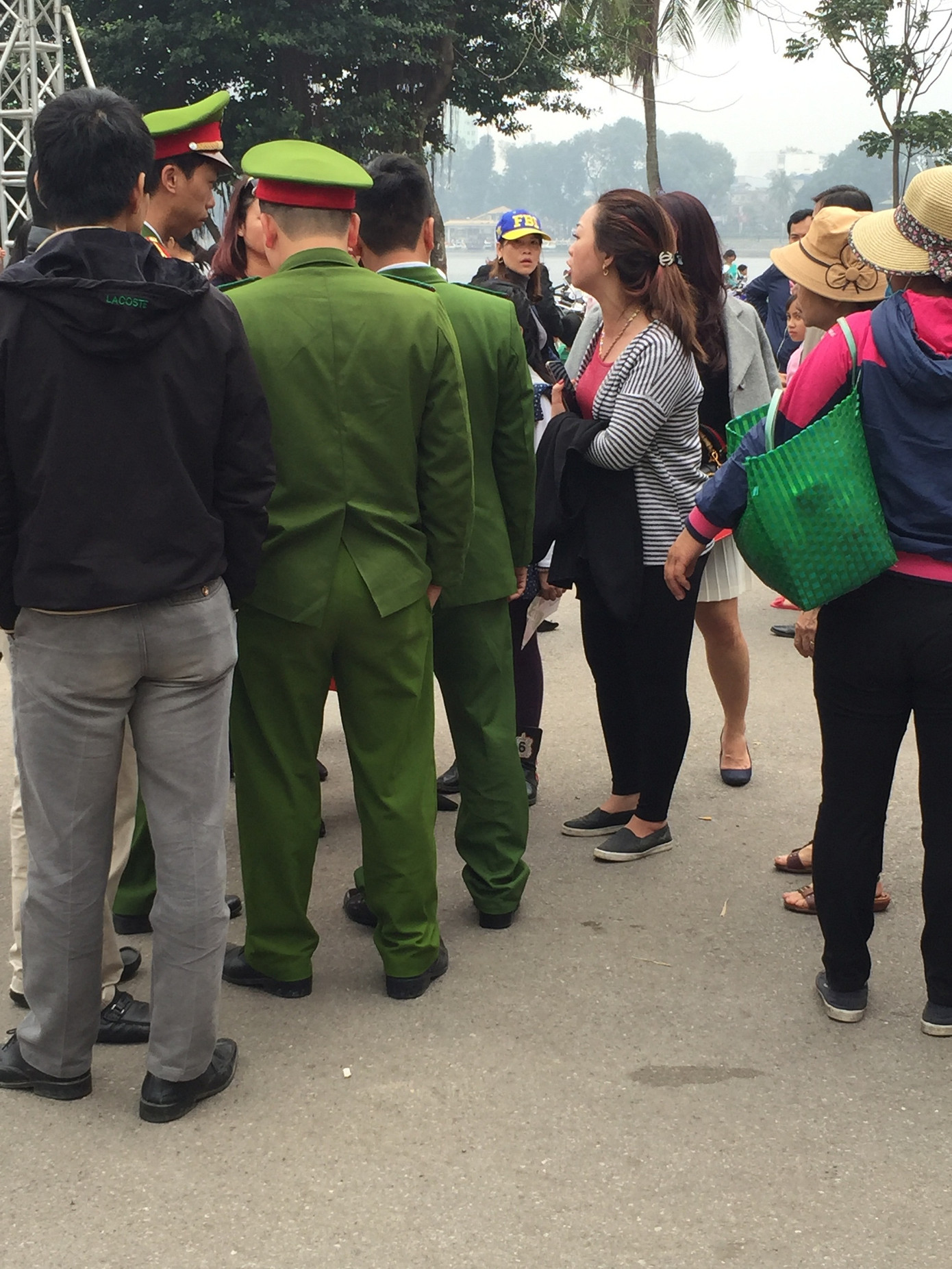 Tại cổng Công viên Thống Nhất, lực lượng phe vé càng đông đảo với hàng chục người ngang nhiên chèo kéo du khách mà không gặp phải bất kì sự ngăn cản nào của cơ quan chức năng.