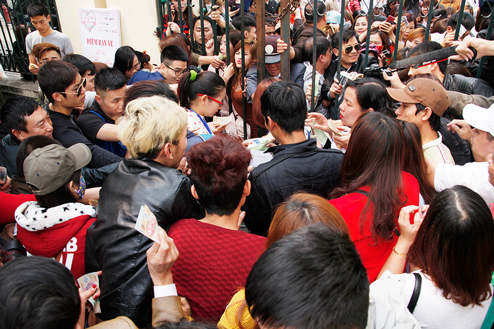 Đông nghịt người chen nhau mua vé vào lễ hội. (Nguồn: Internet)