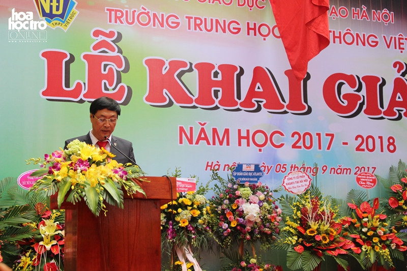 Hiệu trưởng nhà trường, thầy Nguyễn Quốc Bình đã thay mặt toàn thể các thầy cô giáo đọc bản tuyên thệ chào đón năm học mới trong sự vui mừng, phấn khởi của toàn thể các bạn học sinh.