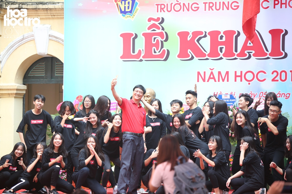 Thầy trò trường Việt Đức cùng nhau chụp hình ghi lại khoảnh khắp đáng nhớ trên sân khấu.