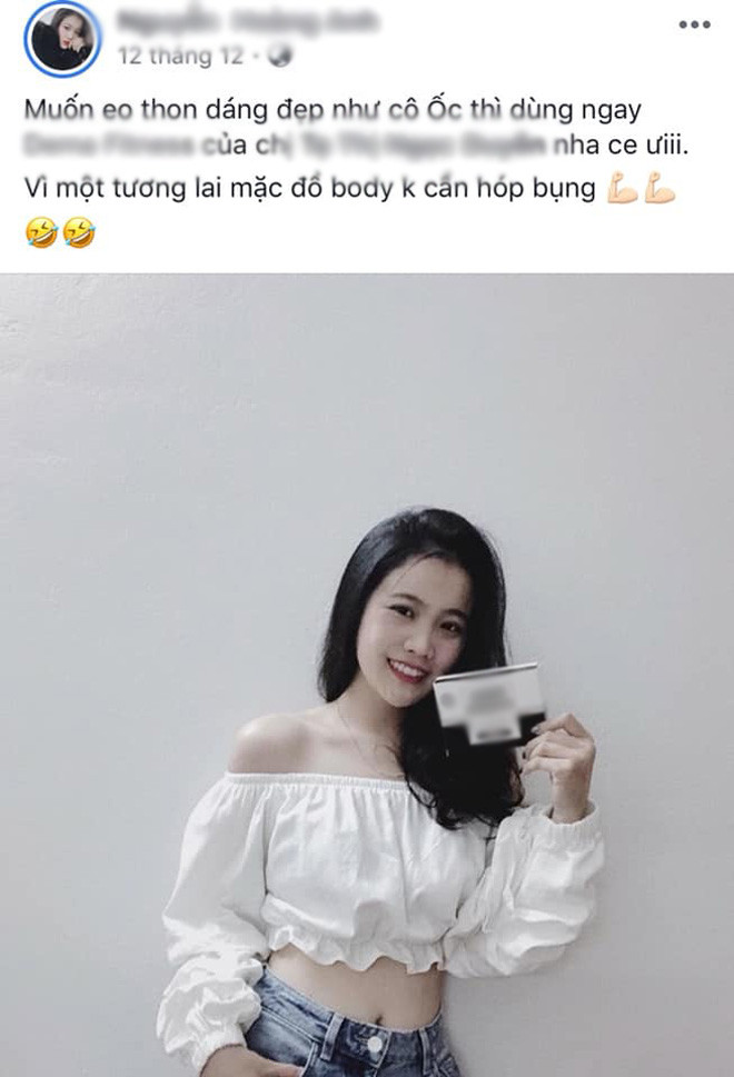 Cụ thể, ngày 18/10, Hoàng Anh chia sẻ sản phẩm hỗ trợ giảm cân có tên C.L. Chỉ 4 ngày sau đó, cô nàng tiếp tục quảng cáo sản phẩm thảo dược "một ngày giảm 3kg" khác. Tiếp đến tháng 12, bạn gái Văn Hậu không ngần ngại khoe vòng eo con kiến nhờ sử dụng sản phẩm giảm cân có tên D.F.