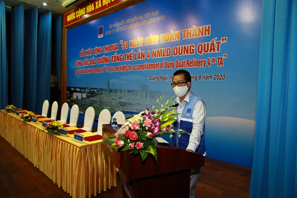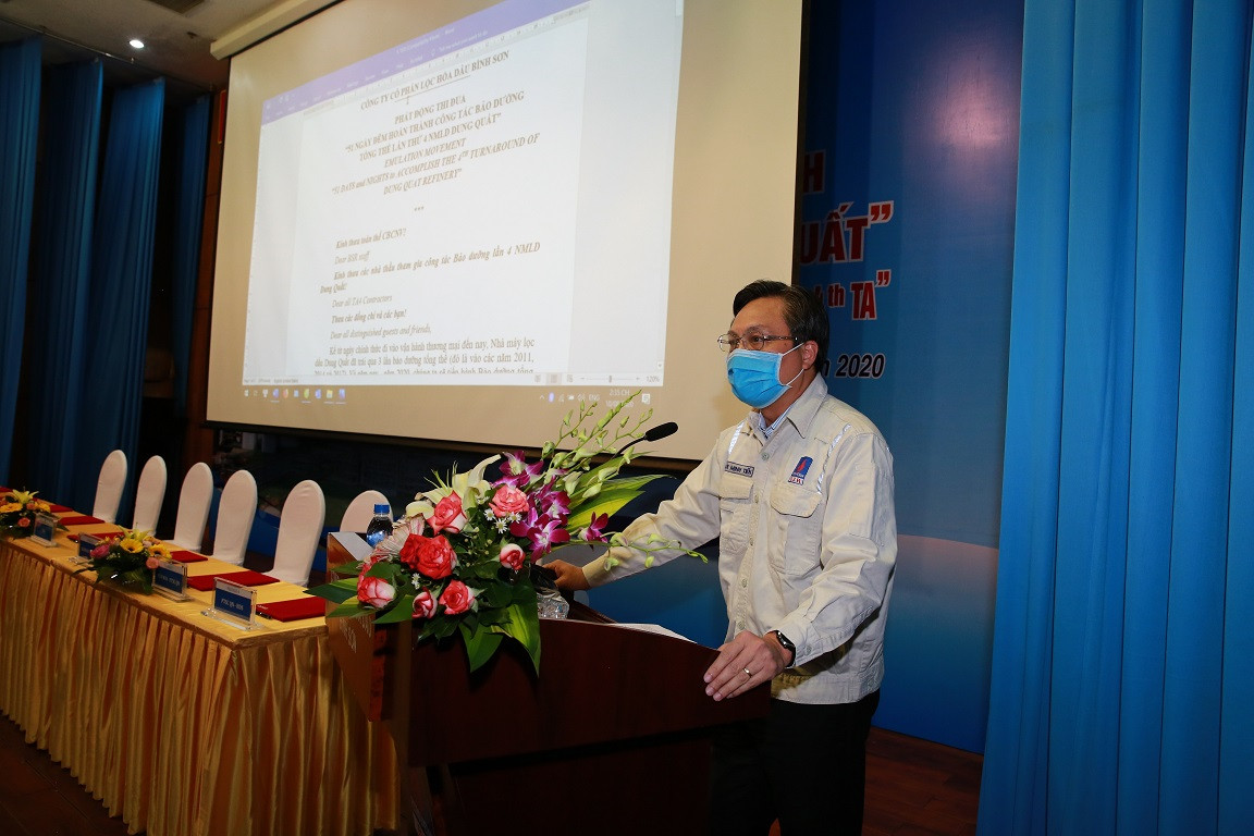Phát biểu phát động tại buổi lễ, Tổng Giám đốc BSR Bùi Minh Tiến nhấn mạnh: Có những thời điểm phương án dừng Nhà máy một thời gian để hạn chế đến mức thấp nhất những thiệt hại do tác động của dịch bệnh và giá dầu giảm đã được đưa ra xem xét và kế hoạch bảo dưỡng tổng thể lần 4 cũng phải cân nhắc lại. Tuy nhiên, với sự chỉ đạo sát sao của Tập đoàn Dầu khí Việt Nam, sự quyết tâm cao của tập thể ban lãnh đạo Công ty, sự đồng lòng của toàn thể người lao động, cùng với sự thành công trong phòng chống dịch Covid-19 của Chính phủ và kết quả kiểm soát tốt công tác phòng chống dịch tại BSR trong thời gian qua, chúng ta đã quyết định: Vừa chống dịch vừa thực hiện bảo dưỡng tổng thể lần 4.