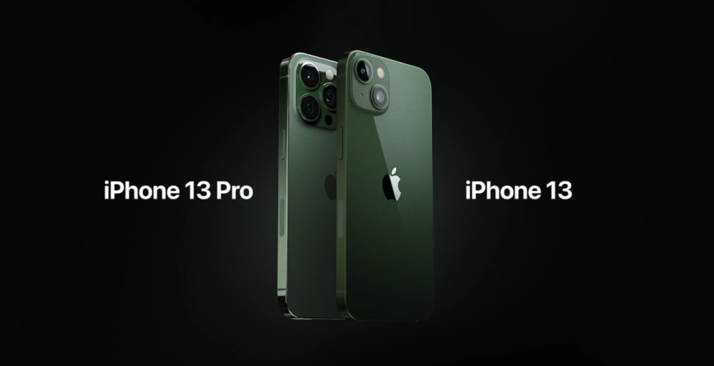 Trong sự kiện này, Apple đã cho ra mắt một phiên bản màu sắc mới của iPhone 13 và iPhone 13 Pro đó là màu Green (xanh lá). Cụ thể, Apple mang đến cho iPhone 13 phiên bản màu Green và iPhone 13 Pro màu Alpine Green. Phiên bản màu Alpine sẽ đậm hơn một chút so với màu Green.