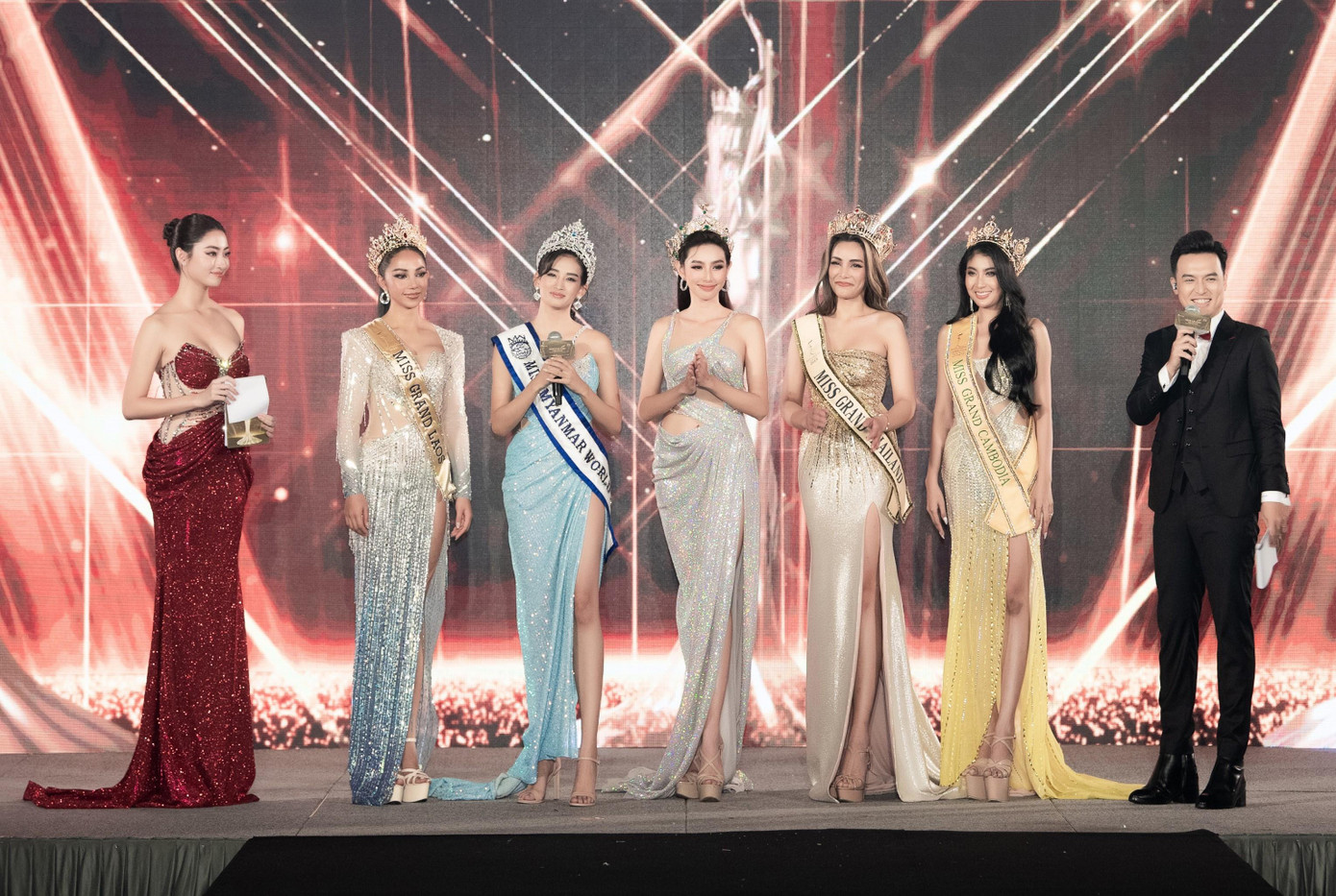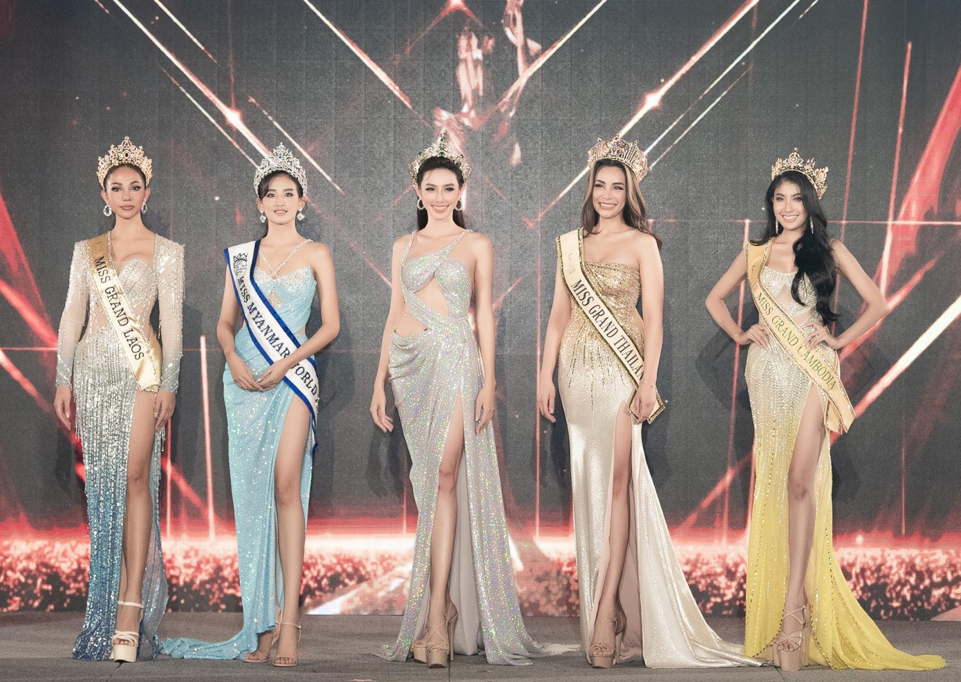 Dàn thí sinh vừa lộ diện khiến dân tình mong chờ sẽ tìm ra người kế tiếp đủ tài sắc như Thùy Tiên dự thi Miss Grand International 2022. Nguyễn Thúc Thùy Tiên cùng “bà trùm Hoa hậu” Phạm Kim Dung đã trao sash đến từng thí sinh. “Nam châm” thu hút đổ dồn vào màn đọ sắc giữa “nàng Hậu quốc dân” của Việt Nam với dàn “mỹ nhân” châu Á như: Miss Grand Thailand 2019 Arayha Suparurk, Miss World Myanmar 2018 Han Thi Thet Lwin, Miss Grand Cambodia 2020 Liv Chivly, Miss Grand Laos 2022 Vongkhamxao Phoutsavanh.