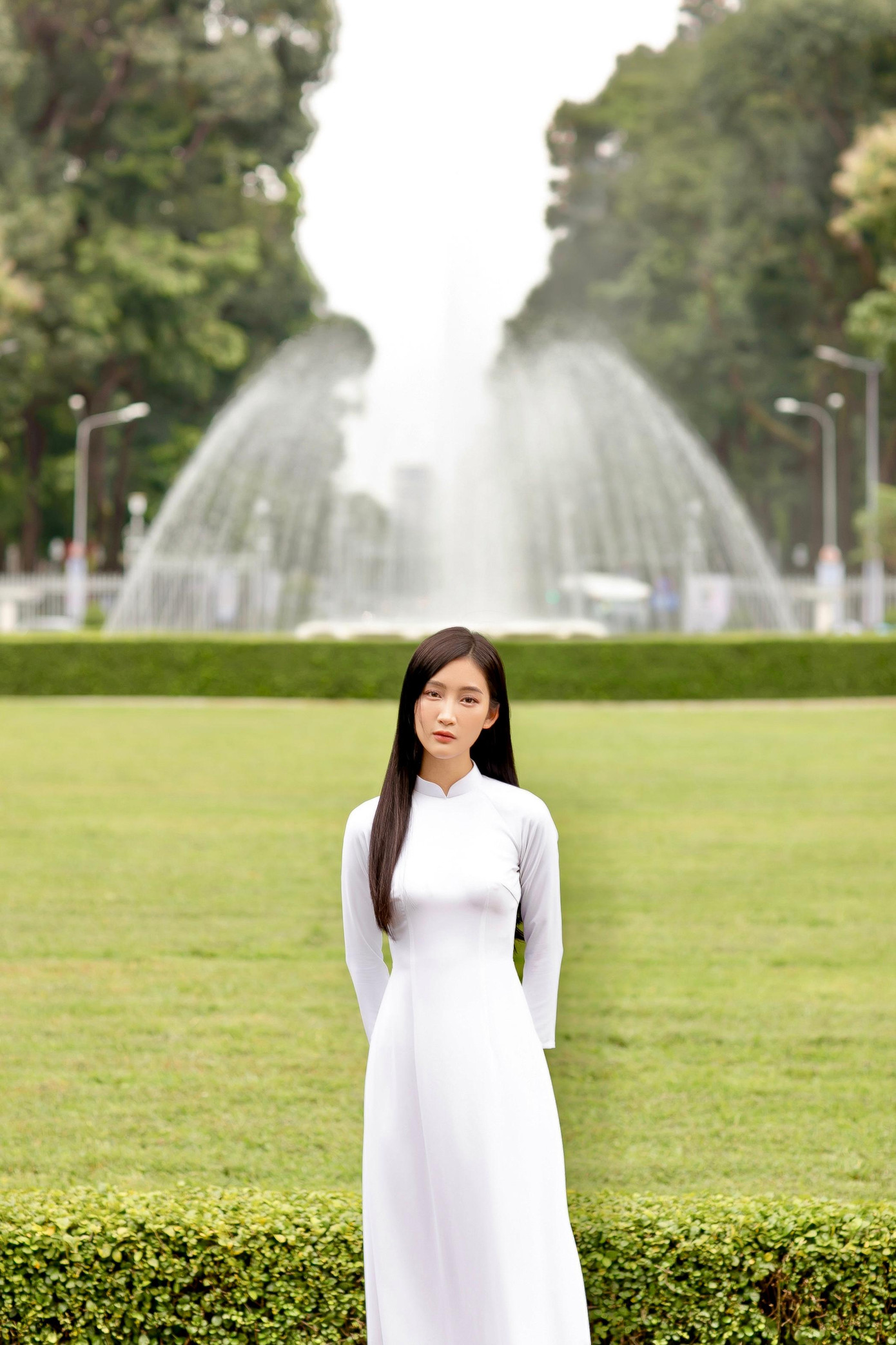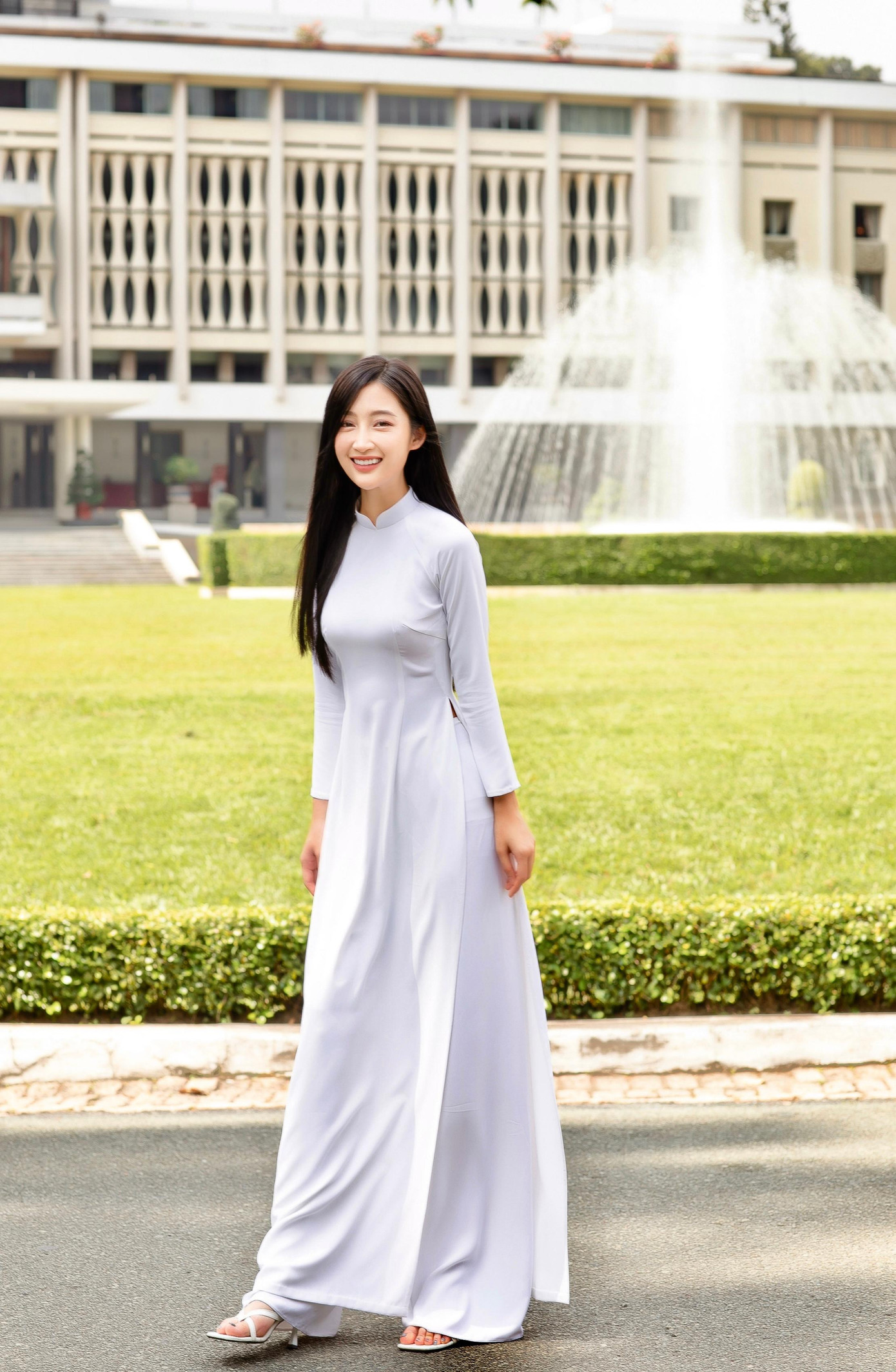 Juky San được biết đến là một nữ ca sĩ với phong cách thời trang đa dạng, yêu thích sự phá cách và cá tính trong mỗi lần xuất hiện. Mừng Ngày Phụ nữ Việt Nam, cô quyết định thực hiện một bộ ảnh áo dài trắng tại Dinh Độc Lập.