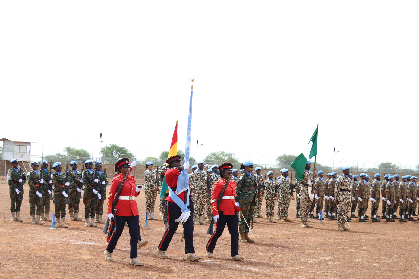 Trước khi vào nội dung chính của buổi lễ, là nghi thức Tư lệnh quân sự phái bộ duyệt đội danh dự, chào quốc kỳ của các quốc gia cử quân. Sau đó, thay mặt cho toàn thể cán bộ, nhân viên Phái bộ UNISFA, Thiếu tướng Benjamin Olufemi Sawyerr và Chuẩn tướng Abu Syed Mohammod Babikir cùng lãnh đạo Phái bộ đã đặt vòng hoa tưởng nhớ những cán bộ, nhân viên gìn giữ hòa bình Liên Hợp Quốc (GGHB LHQ) đã hy sinh trong khi làm nhiệm vụ.