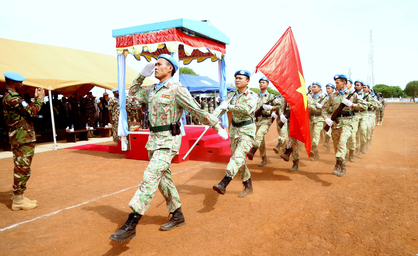 Tham gia duyệt binh tại lễ kỷ niệm có 8 khối gồm Đội Công binh số 1 Việt Nam, Tiểu đoàn Bộ binh Ấn Độ, Tiểu đoàn Bộ binh Ghana, Tiểu đoàn Bộ binh Pakistan, Tiểu đoàn Bộ binh Bangladesh, đơn vị Nigeria Bảo vệ Sở chỉ huy phái bộ, đơn vị Nepal Bảo đảm phục vụ Sở chỉ huy phái bộ và đơn vị Trực thăng Trung Quốc.