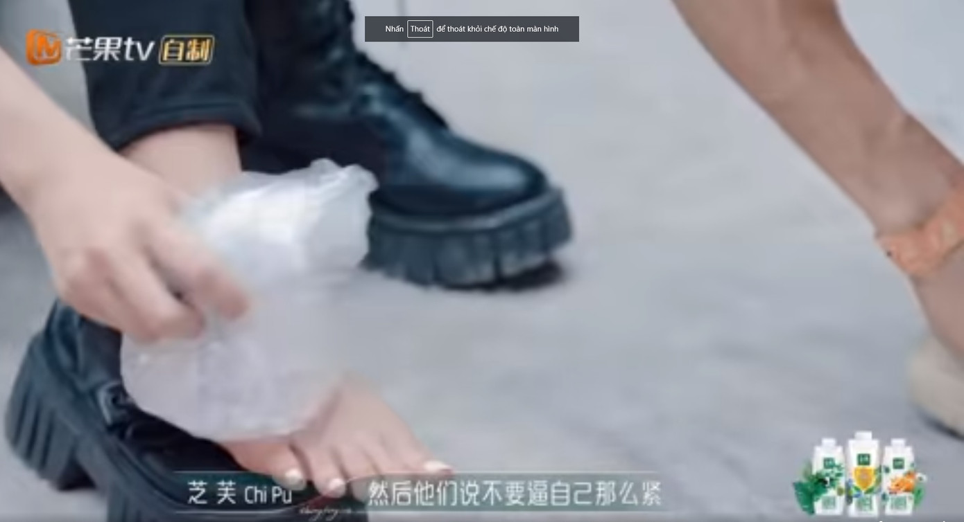 Cuối mỗi buổi tập, Chi Pu lại nén đau dùng túi đá lạnh để chườm bàn chân sưng tấy. Còn bắp chân dù đã mặc quần dài vẫn không che được những vết tím bầm do va chạm vào cột. Thậm chí có lúc tập cùng Tạ Hân, Chi Pu còn bị rơi từ trên cao xuống, đập cả lưng vào nệm bên dưới rất mạnh.