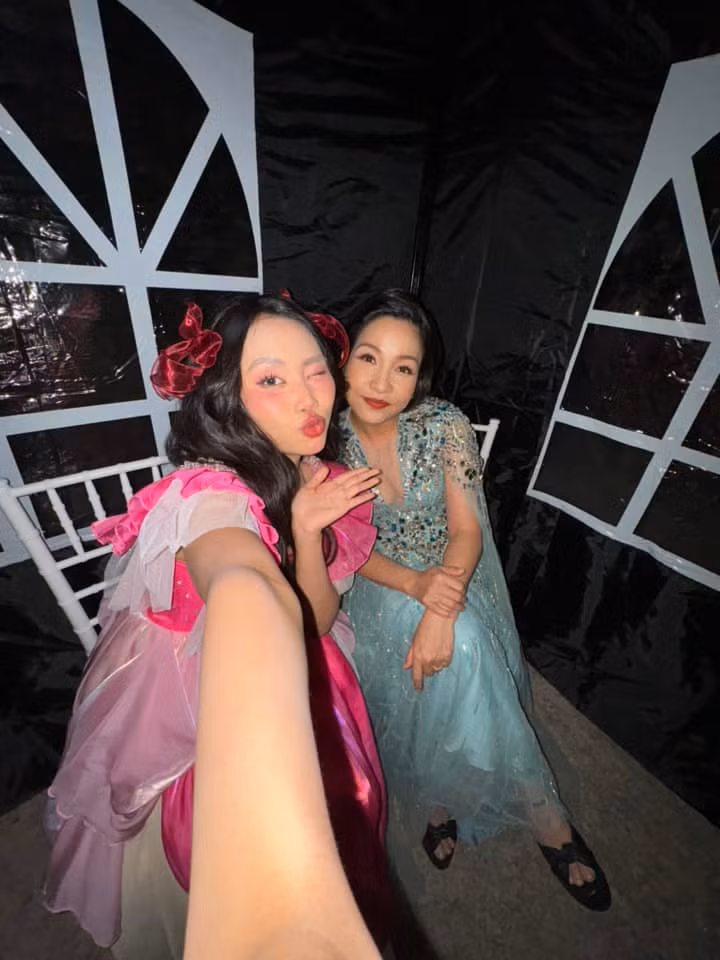 | Phương Mỹ Chi lắng nghe diva Mỹ Linh hát ca khúc Người Hà Nội. |