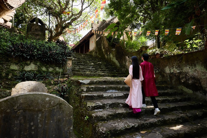 Vẻ đẹp cổ kính, rêu phong của ngôi chùa không chỉ đem đến cảm giác bình yên cho phật tử, du khách bốn phương, mà còn tạo cảm hứng cho các bạn trẻ yêu thích điểm đến tâm linh đến vãn cảnh, chụp ảnh.