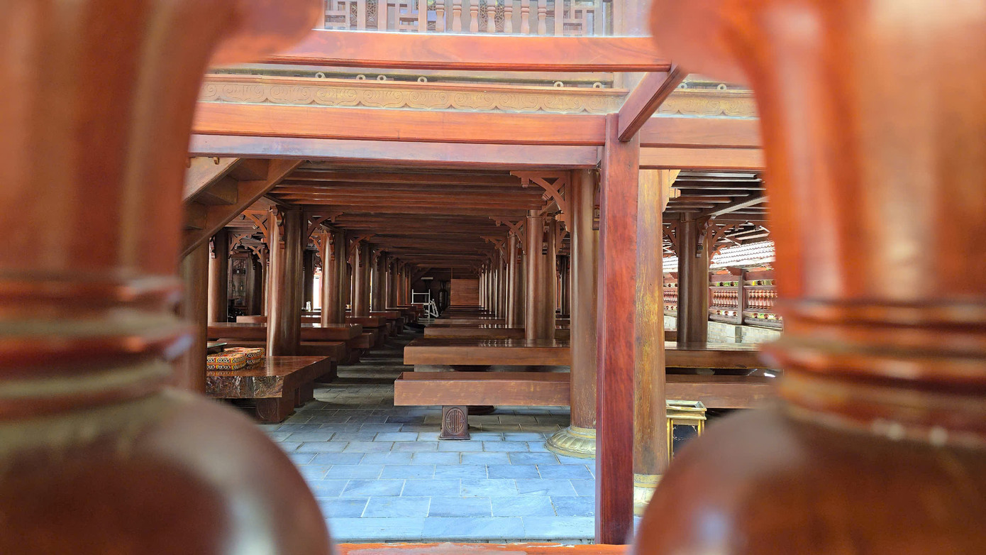 | Những bức chạm trổ trang trí nhiều hoa văn tinh xảo trên khung cửa |