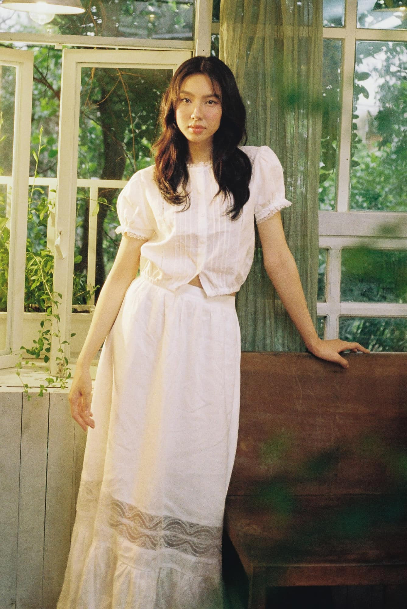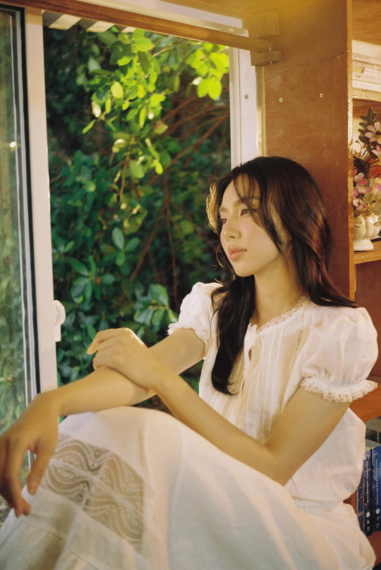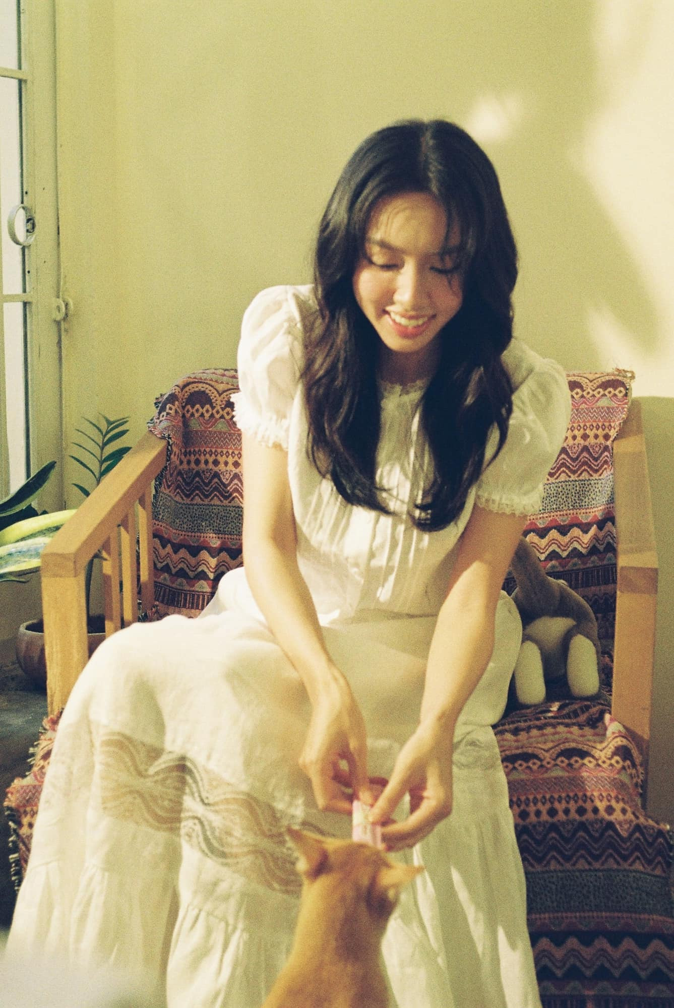 Hoa hậu Thùy Tiên cũng tạm giã từ hình ảnh sắc sảo, sang chảnh quen thuộc để làm cô thôn nữ đồng quê với set váy trắng ngọt ngào. Từ nước ảnh đậm chất hoài cổ đến kiểu tóc xoăn nhẹ, bộ váy bồng bềnh đều biến Thùy Tiên thành "nàng thơ mùa Thu".