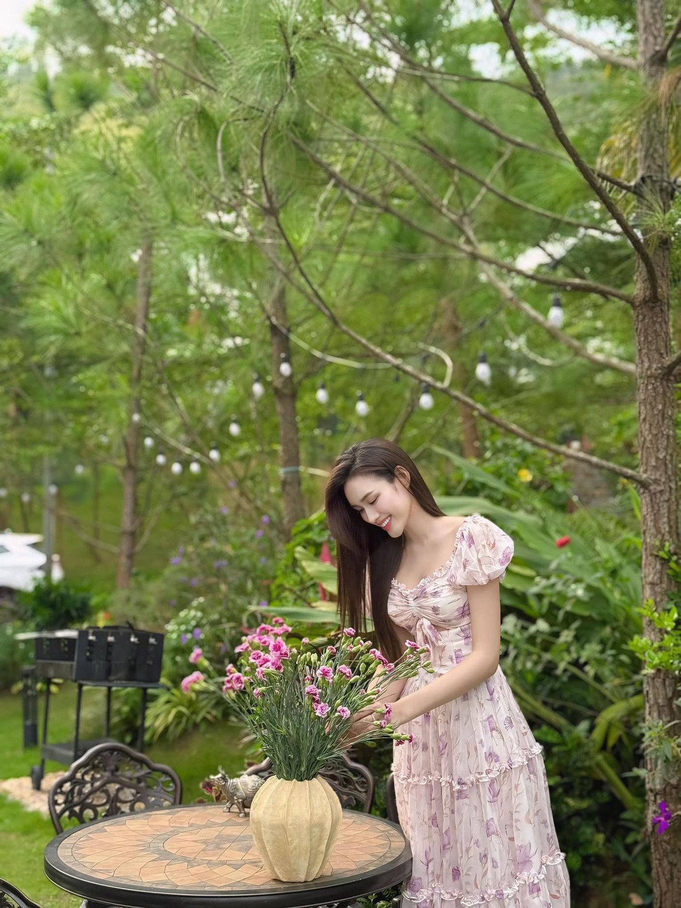 Loạt ảnh nàng hậu ngồi cắm hoa giữa không gian xanh mướt, mặc bộ váy voan dịu dàng khiến khán giả bất ngờ với Đỗ Thị Hà phiên bản nữ tính đến bất ngờ.