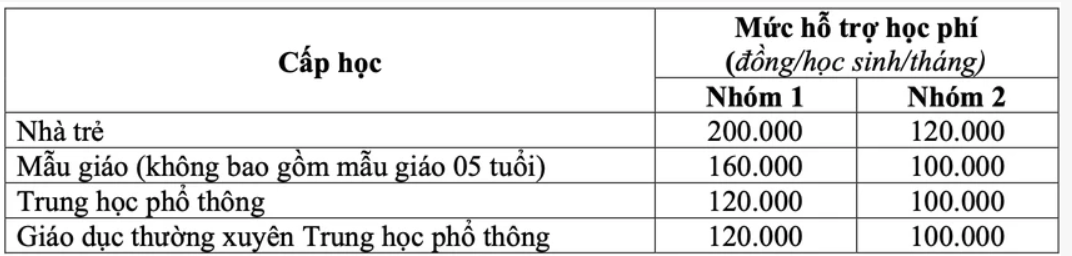 Mức hỗ trợ này bằng với mức học phí mà học sinh các cấp phải đóng hằng tháng hiện nay. Với chính sách này, học sinh sẽ được miễn học phí.
