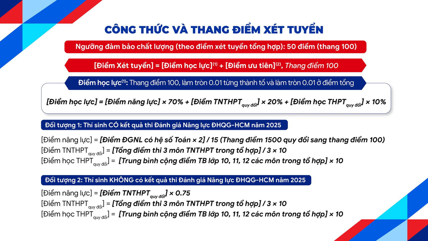 Đối tượng 1: Trường hợp thí sinh có kết quả thi đánh giá năng lực của ĐH Quốc gia TP.HCM năm 2025.