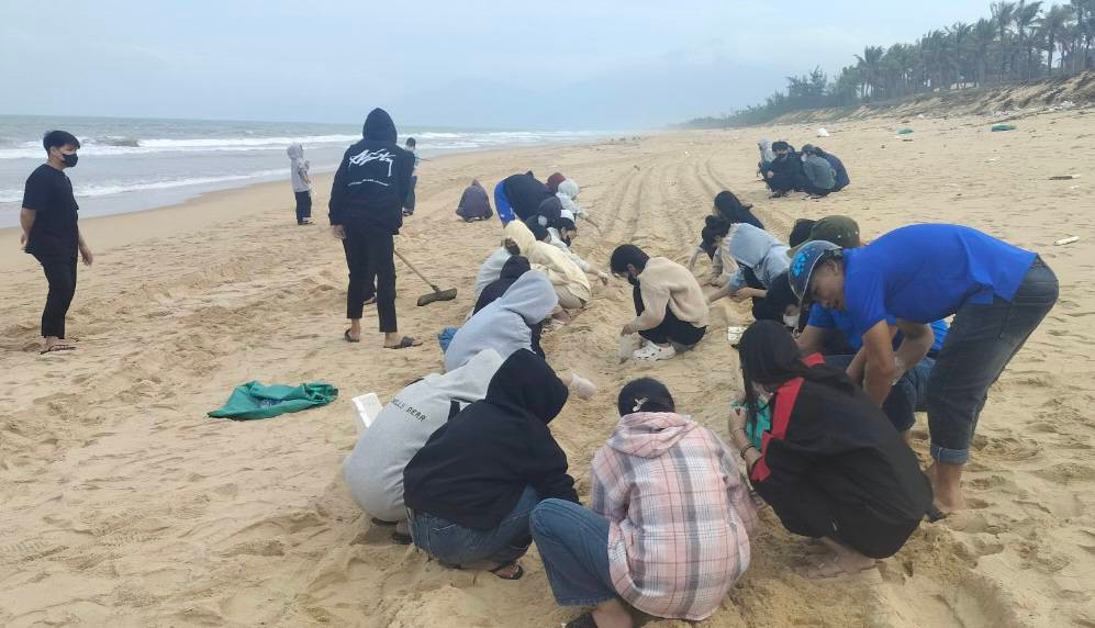 Do dầu vón cục trôi dạt vào bờ bị vùi lấp trong cát với số lượng rất lớn, nên công tác thu gom, xử lý của lực lượng thanh niên tình nguyện, người dân, cơ quan chức năng gặp nhiều khó khăn.