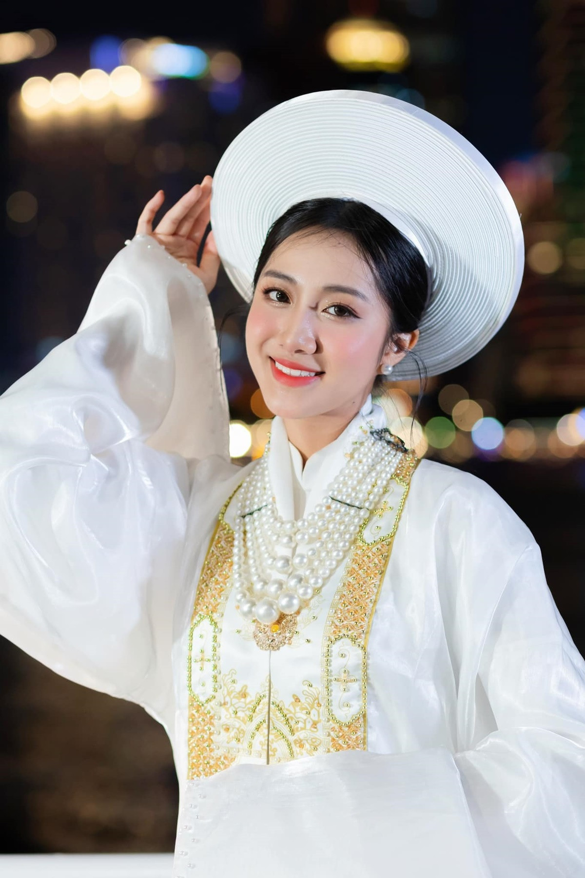 Hà Trúc Linh, sinh năm 2004, sinh viên Khoa Marketing đăng quang tại đêm Chung kết cuộc thi Nét đẹp sinh viên Đại học Tài chính - Marketing (Miss & Mister UFM) 2023 tối 14/10/2023.