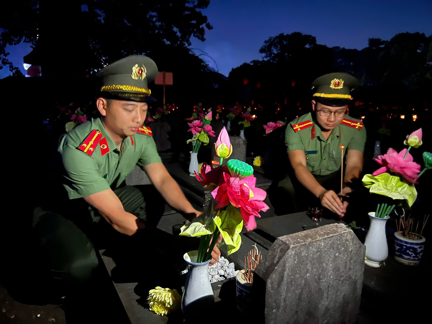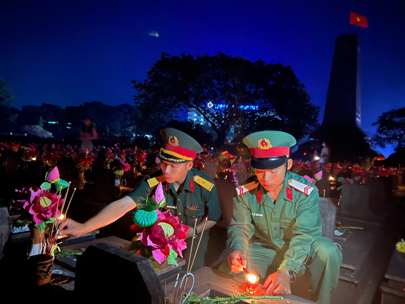 | Ngàn ngọn nến tri ân đã được các đoàn viên, thanh niên thắp sáng trên các phần mộ liệt sĩ, tưởng nhớ đến sự hy sinh to lớn của các thế hệ ông cha đã chiến đấu, bảo vệ nền độc lập của dân tộc. |